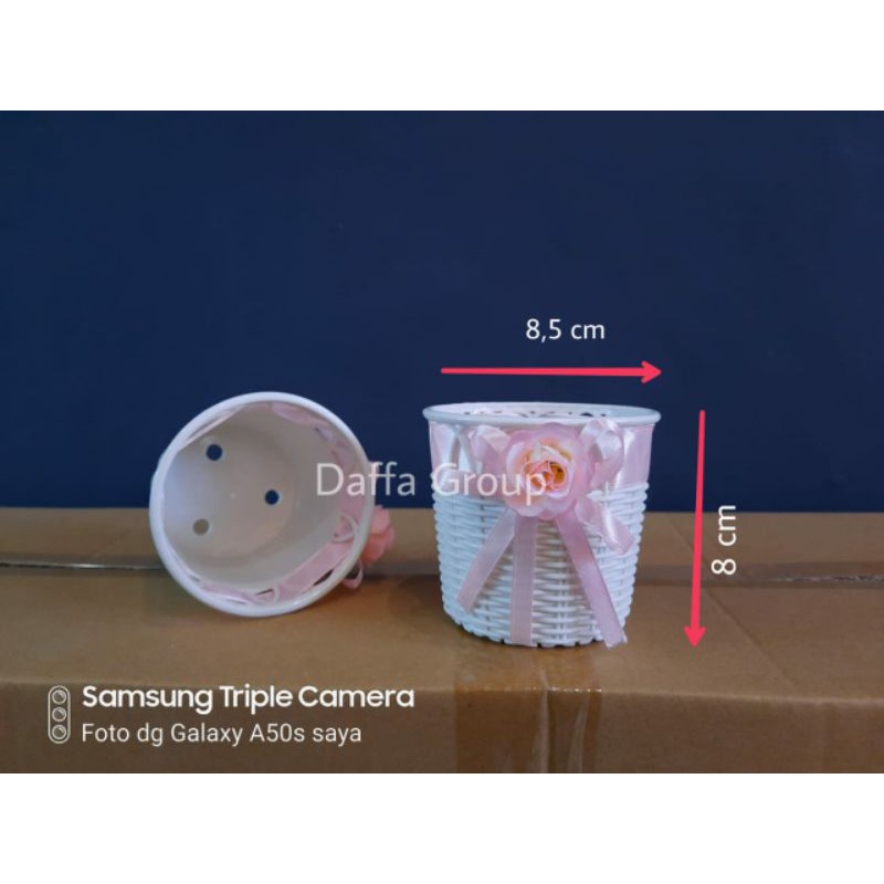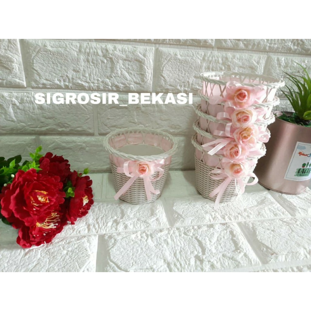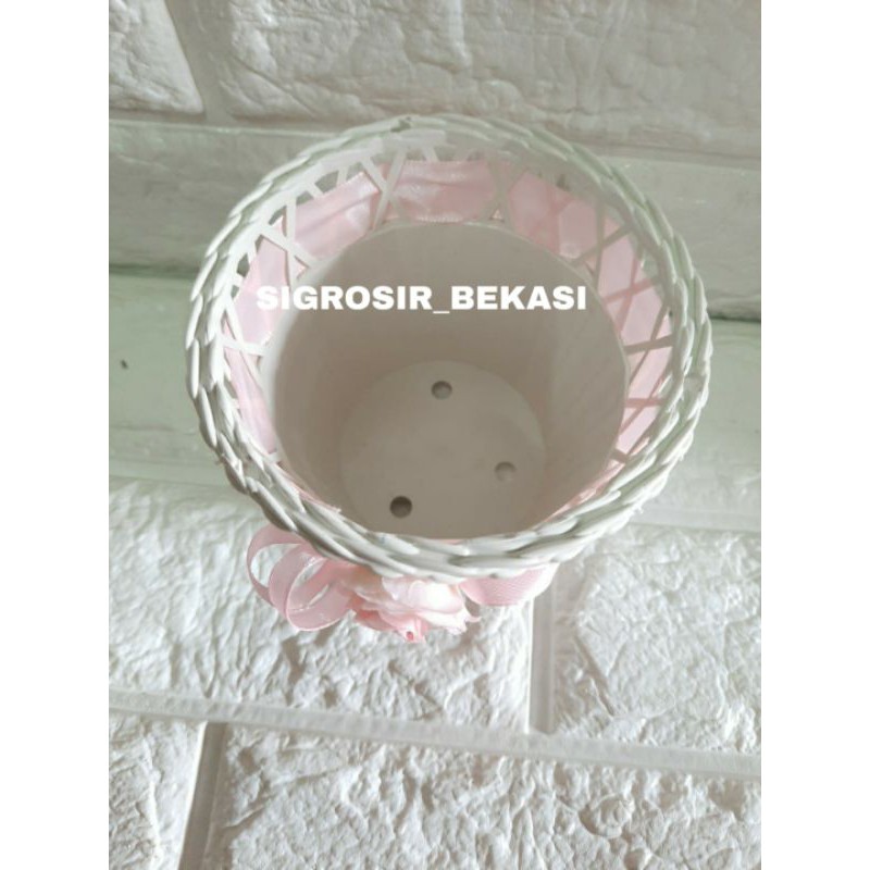 dnd VAS BUNGA ROTAN PITA PINK pot rotan besar / pot bunga rotan vas pita vas putih/ pot bunga/ vas rotan/ artificial