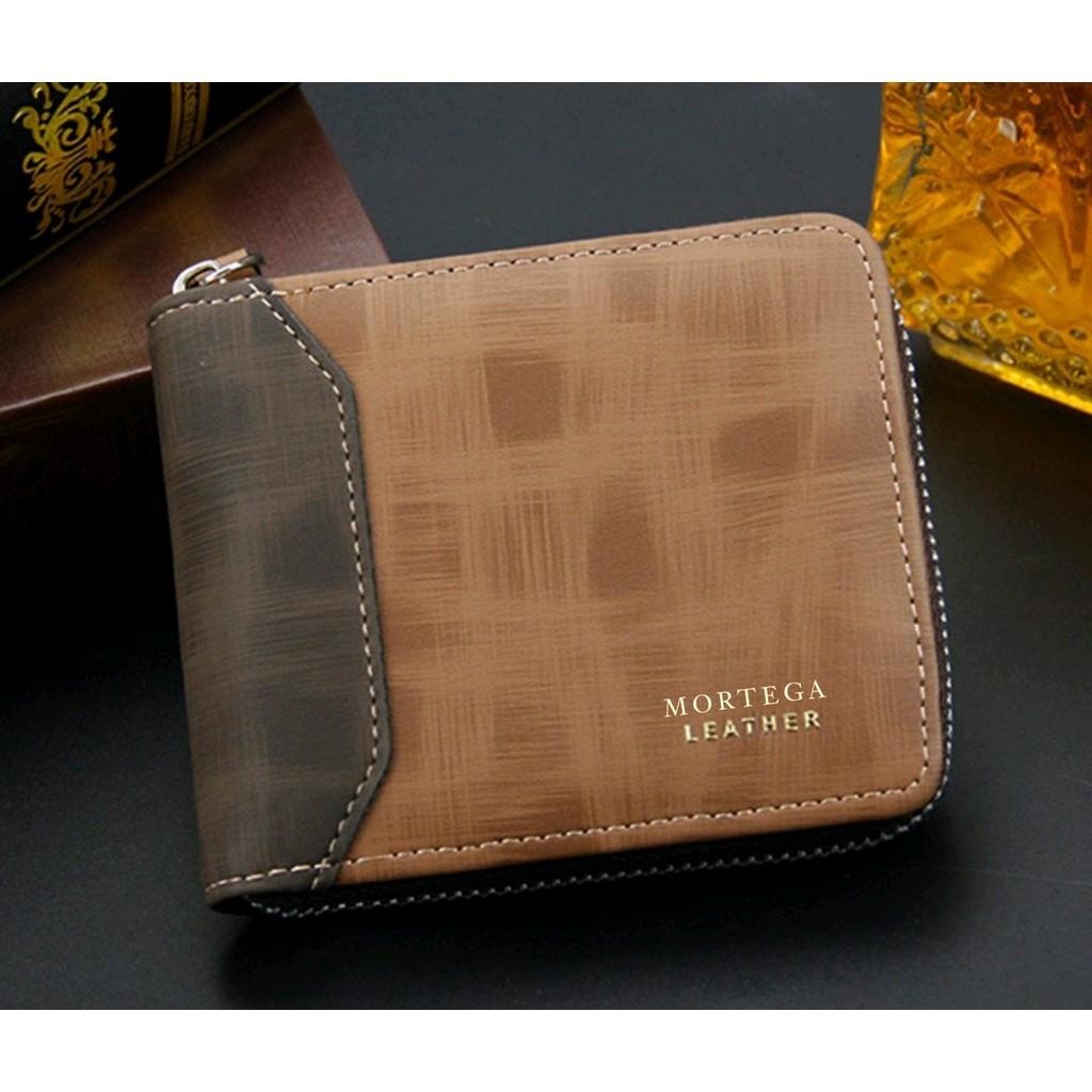 dompet pria dompet cowok dompet kulit pria lipat mortega resleting zipper bahan kulit PU