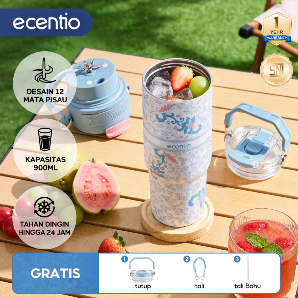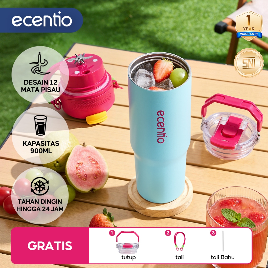 ecentio blender portable kapsul Kaca Gelas juicer buah tanpa ampas 10 Pisau blender jus buah hand blender mini juicer juicer portable blender 380ml+380ml blender jus
