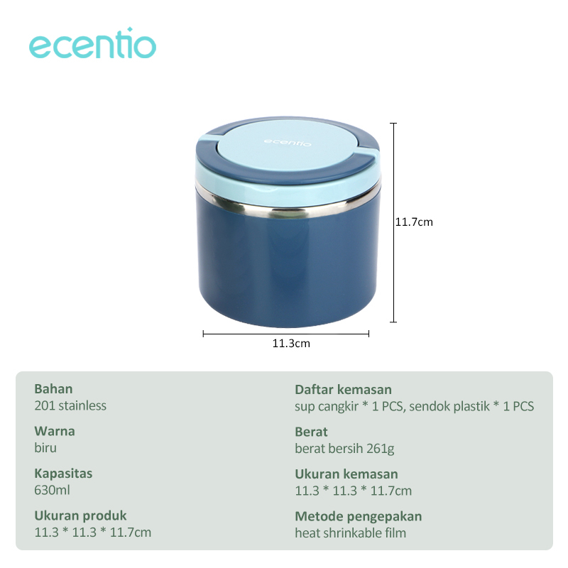 ecentio Cangkir sup Bekal Sup 630ml Stainless steel Tahan Panas Lunch Box Tetap hangat Kotak Makan