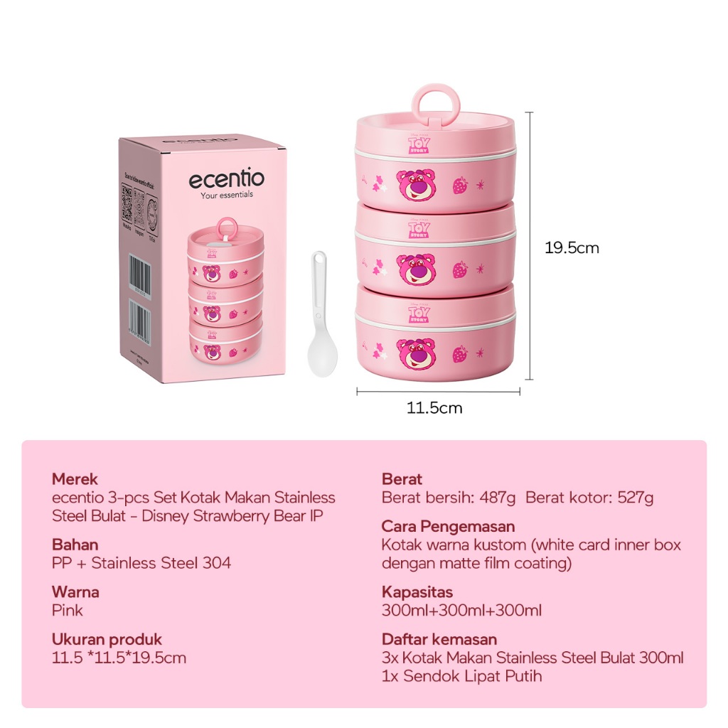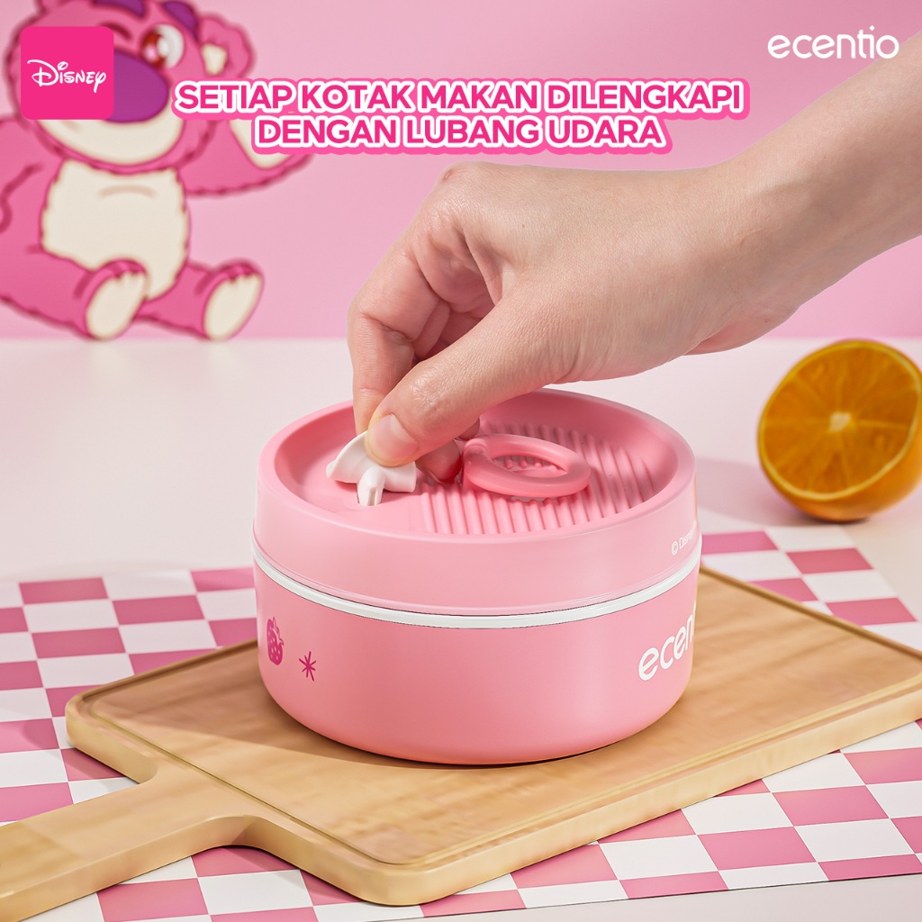 ecentio lunch box tas set 3pcs lucu Disney lotso Kotak Makan anti tumpah 304 Stainless Steel tas bekal dan free sumpit pink
