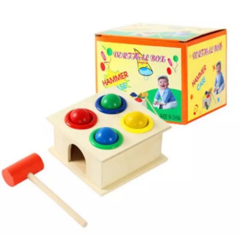 edukasianakpintar_indonesia / Mainan pukul-pukulan anak, hammer case, MontessoriBall Hammer Wooden Box Mainan Edukasi Kayu Pukul Palu Kotak