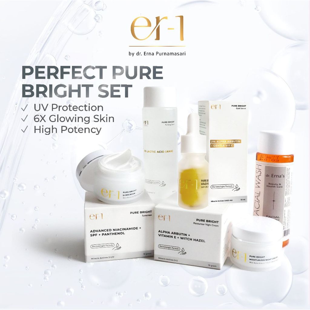 er-1 by dr. Erna Perfect Pure Bright Set 5 Pcs - Paket Skincare Brightening Pemutih - Serum Night Cream Day Cream Sunscreen Facial Wash Cleanser Toner Wajah-PB5
