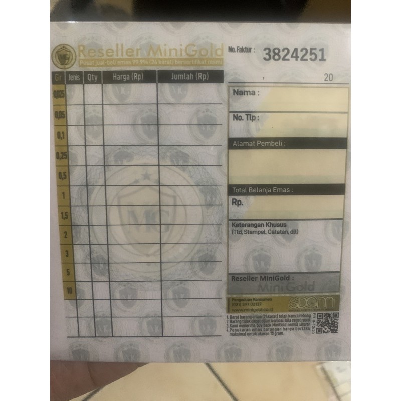 faktur reseller Mini Gold harga 1 lembar wajib beli produk