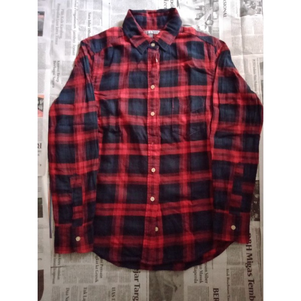 flanel uniqlo merah