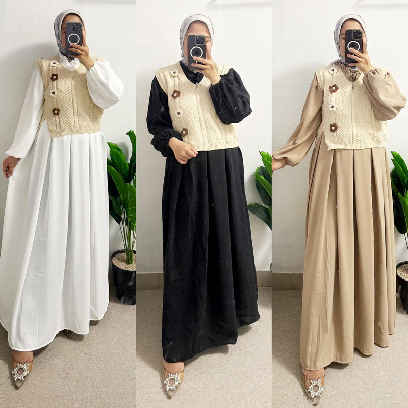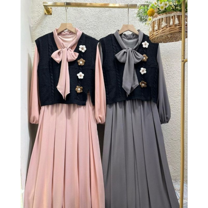 flowery dress gamis vest gamis korean style gamis lebaran