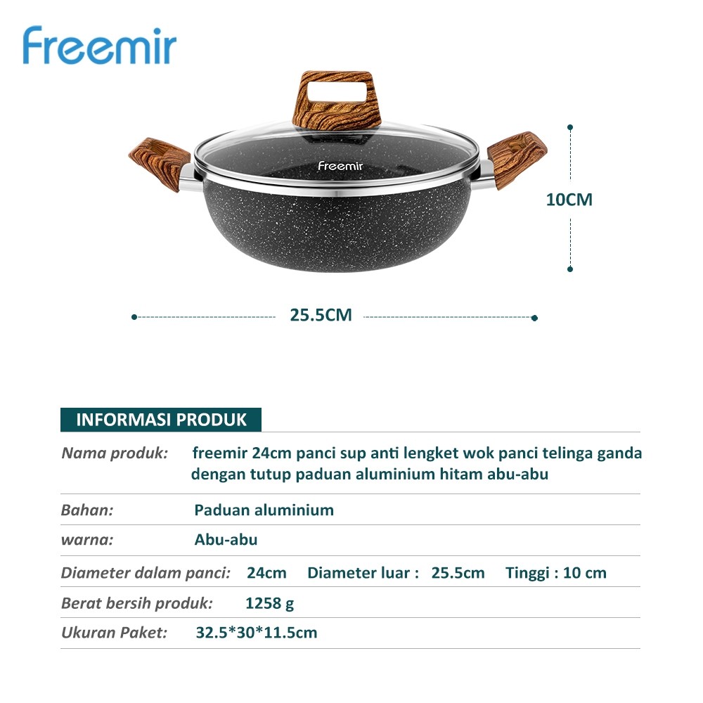 freemir Deep Wood Series Wajan Panci 24cm Warna Hitam/Beige Kedalaman 10cm Anti Lengket