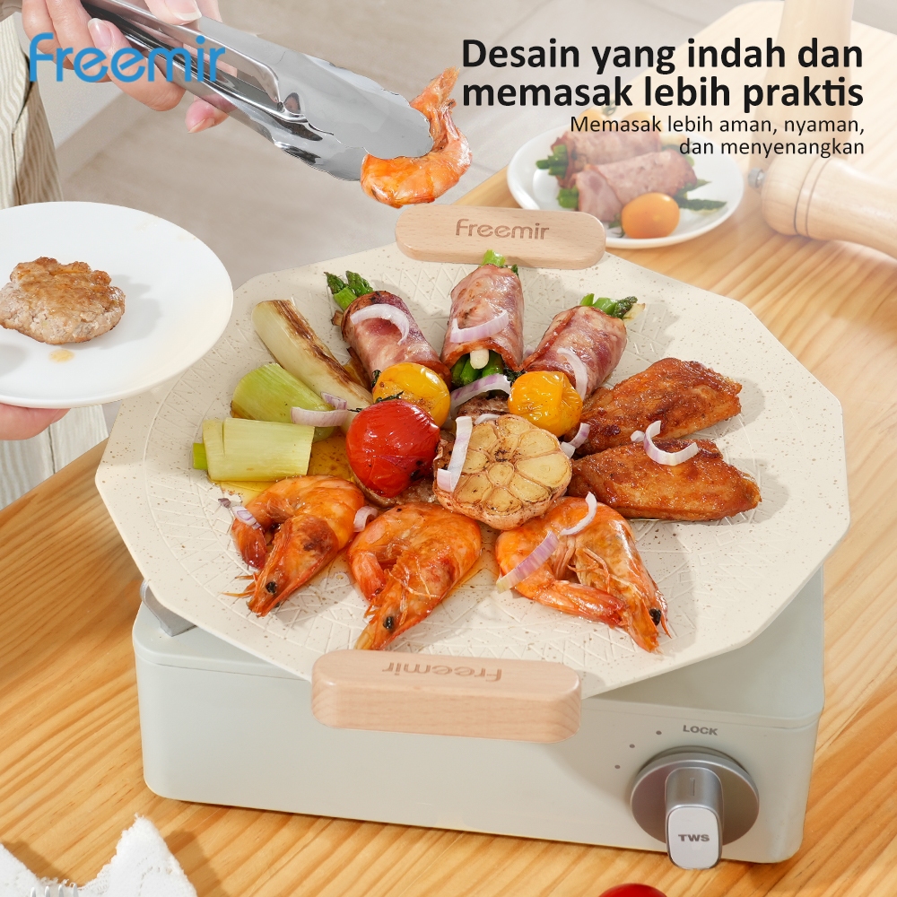 freemir Grill Pan FREE Capitan Anti Lengket 30 cm Korean Wajan Pemanggang Serbaguna Bulat Panggangan Luar BBQ
