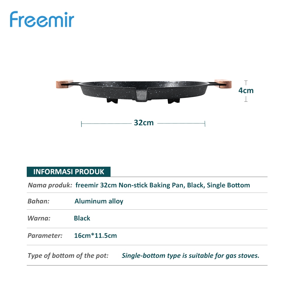 freemir Tray Panggang Anti Lengket & Anti Gosong 32cm - Hitam Estetik | Gagang Kayu dan Penyaring Minyak (Free Gift)