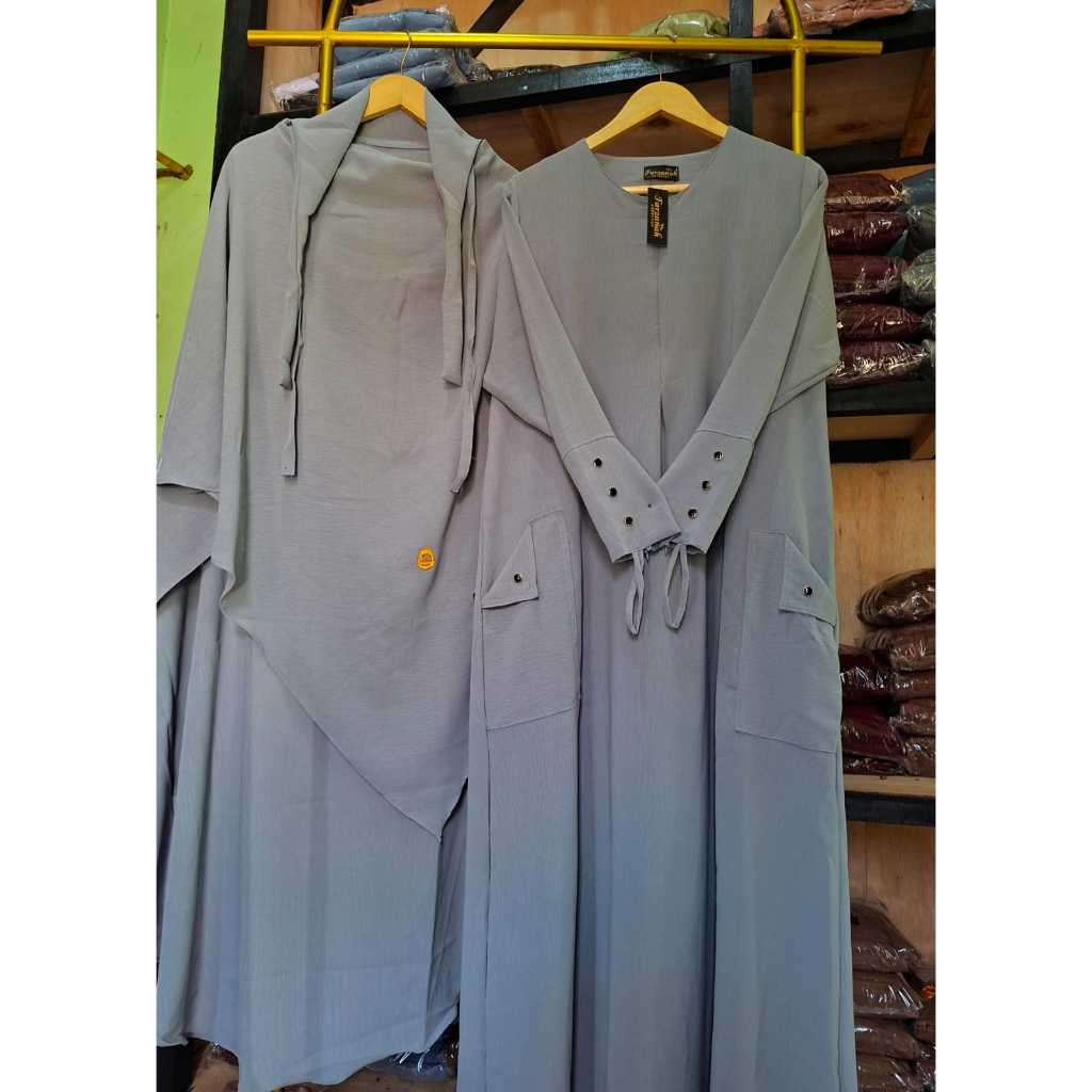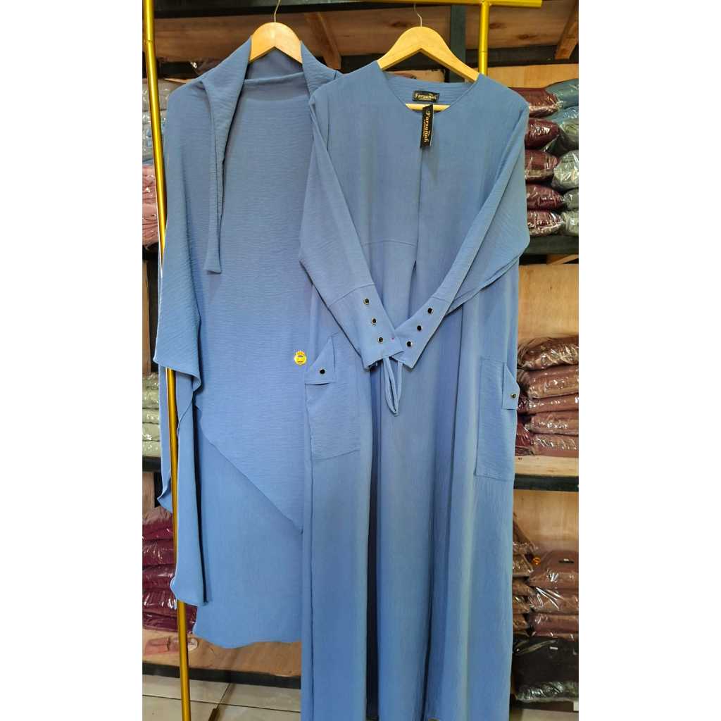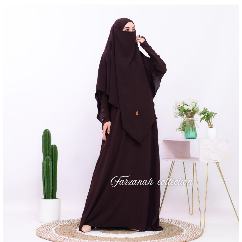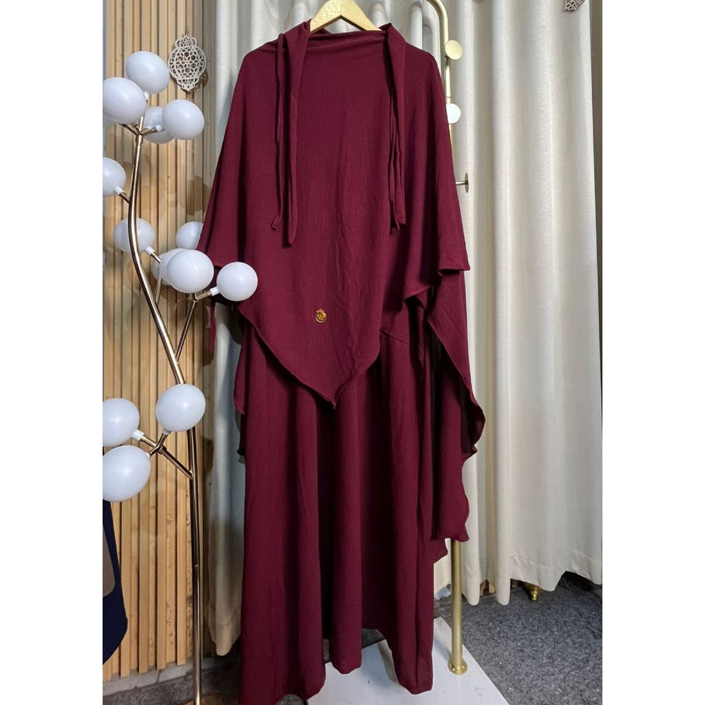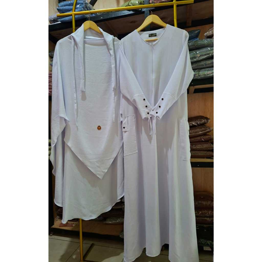 gamis abaya haviza set french khimar abaya muslimah umroh haji terbaru crinkle mewah variasi kancing
