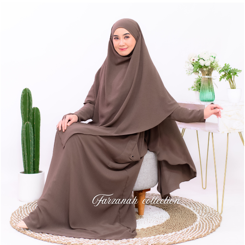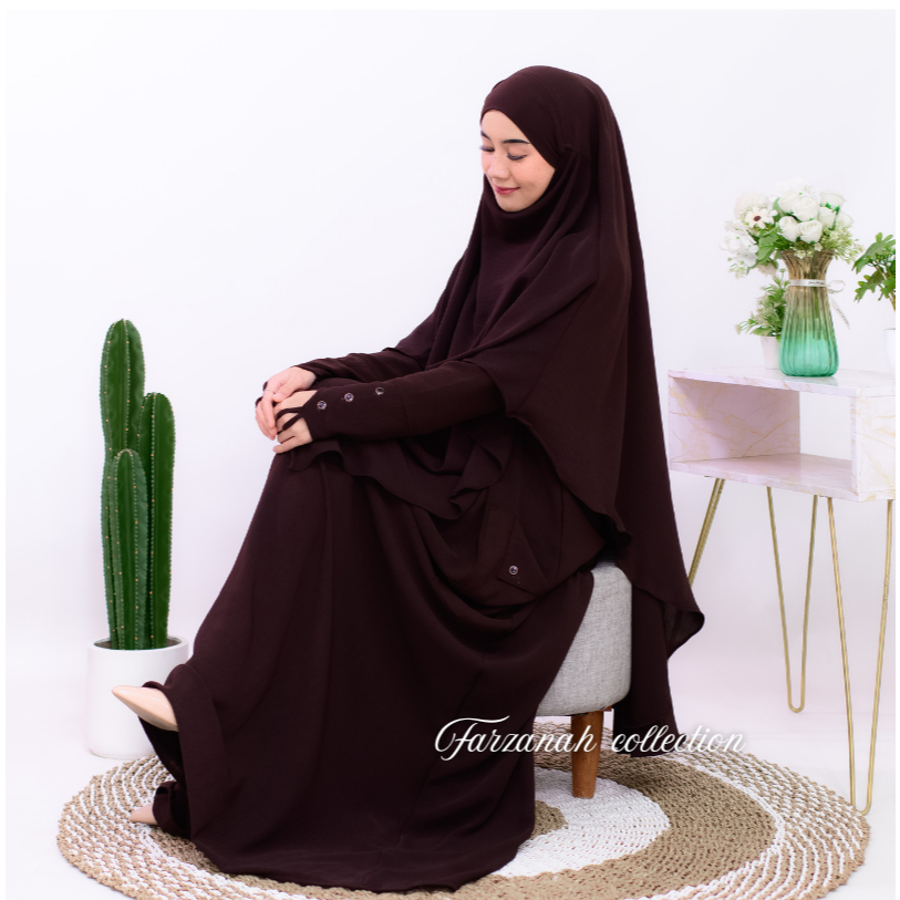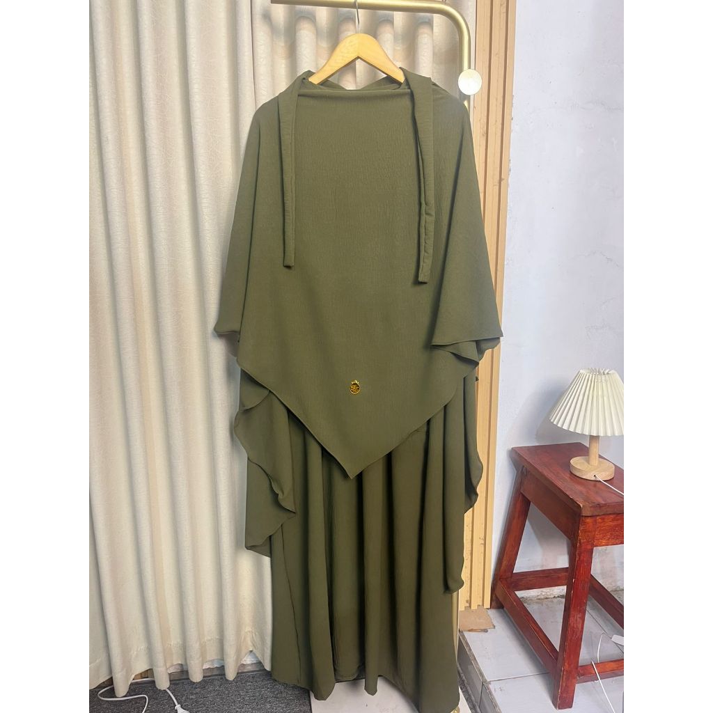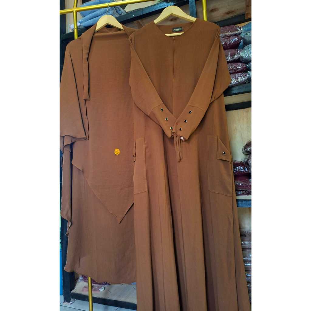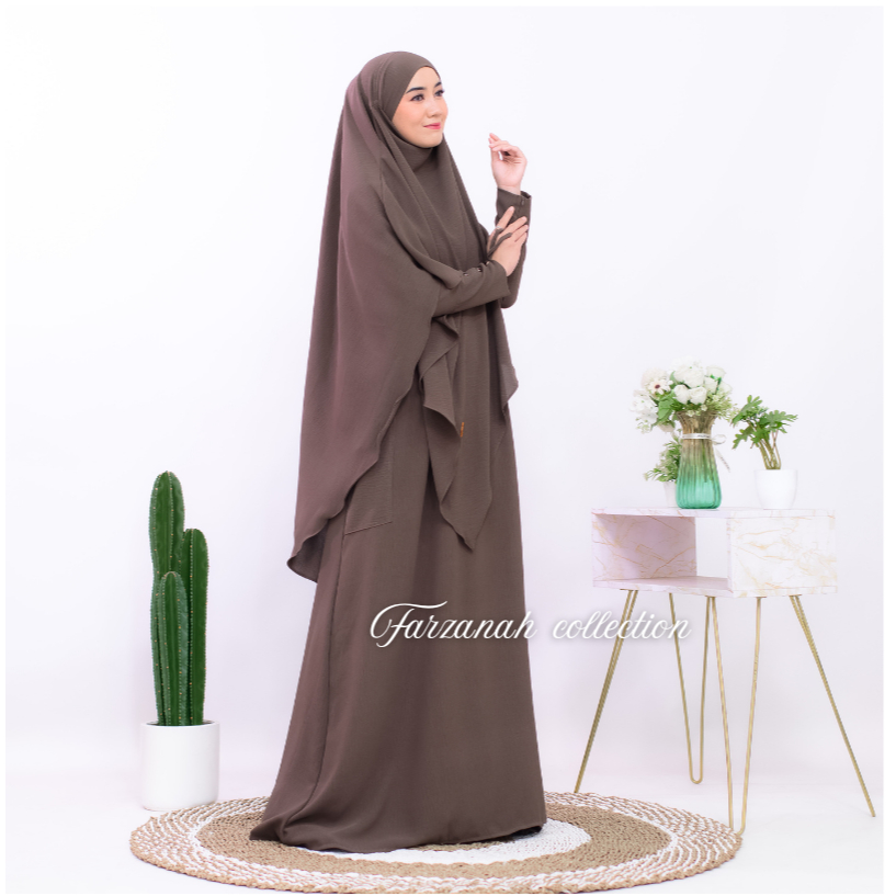gamis abaya haviza set french khimar abaya muslimah umroh haji terbaru crinkle mewah variasi kancing
