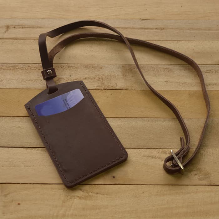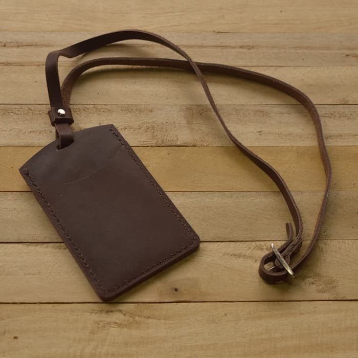 gantungan ID card kulit asli warna coklat id card holder//