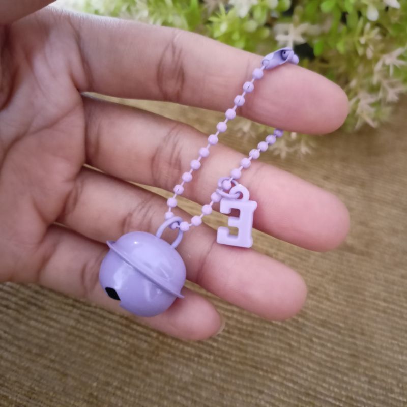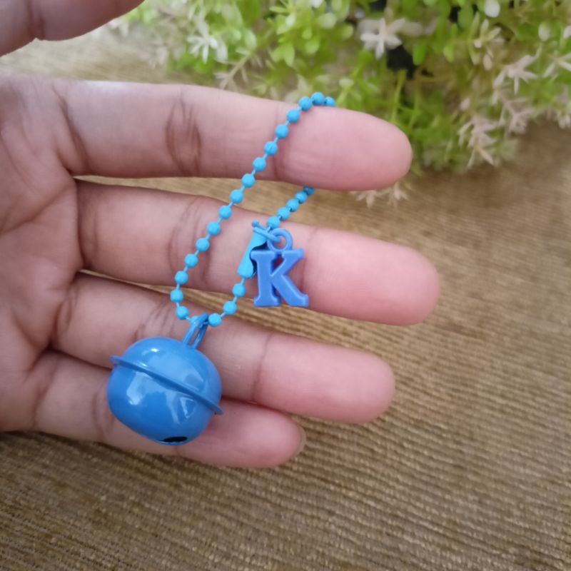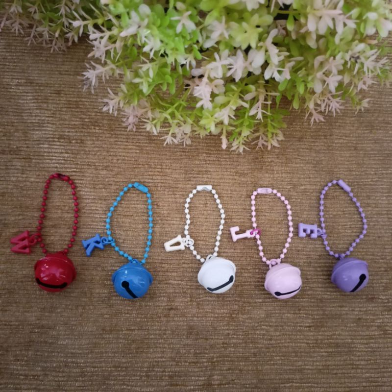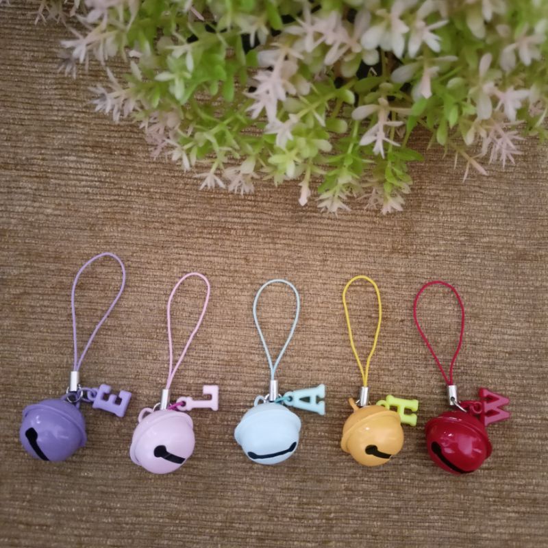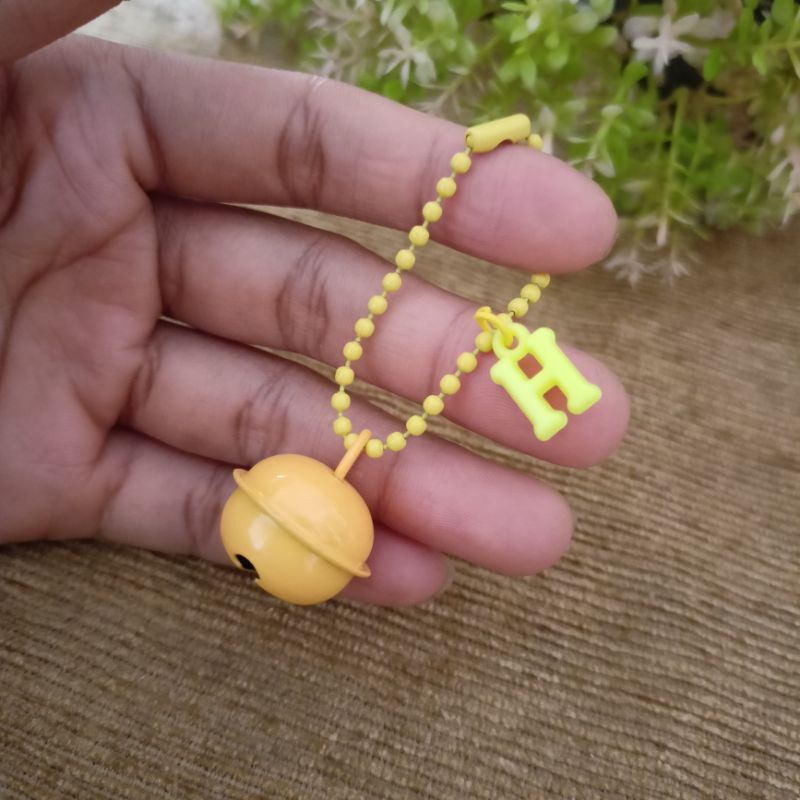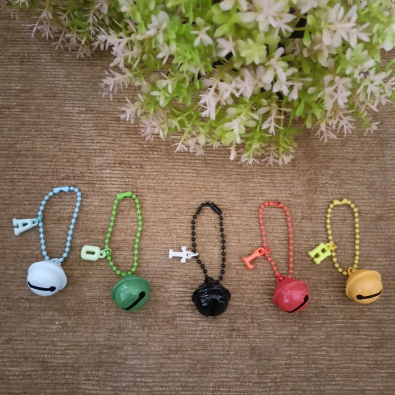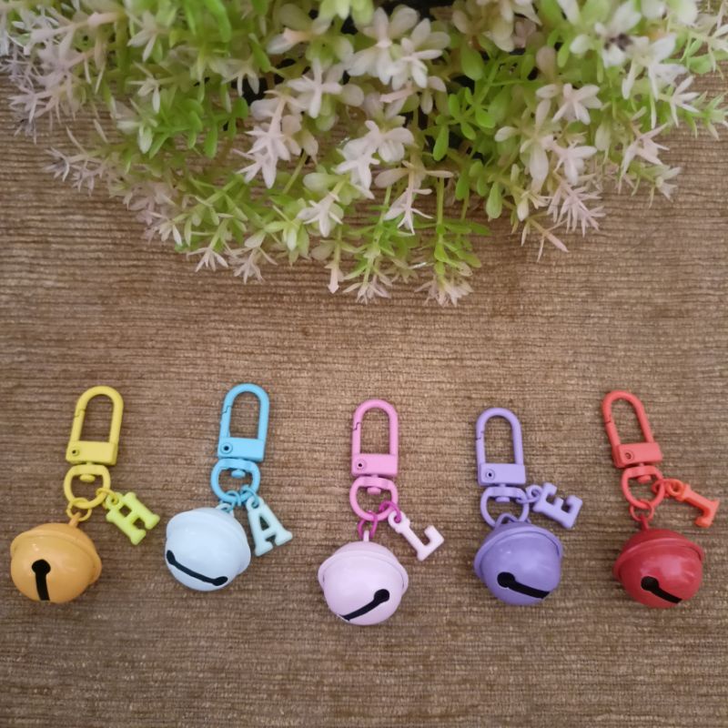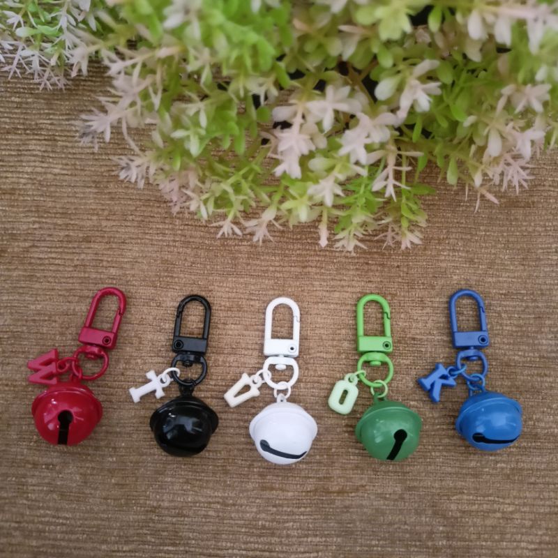 gantungan kunci lonceng besar dengan inisial huruf keychain bell lonceng warna warni