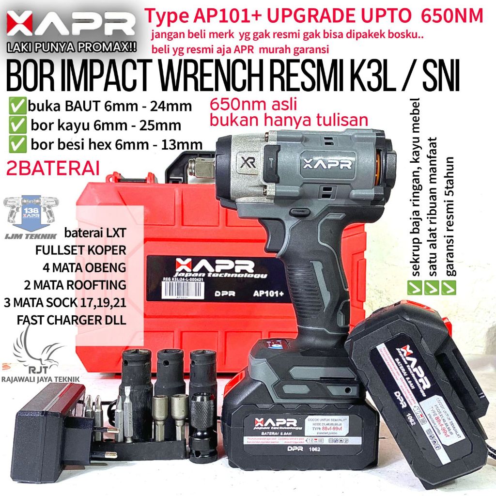garansi promo impact apr jumbo ap33+ 1800nm 99vf 1/2inch fullset koper 2 baterai lxt pembuka baut