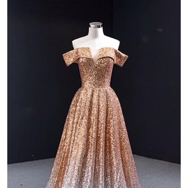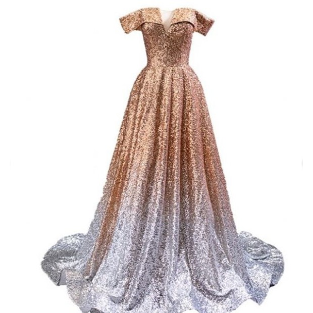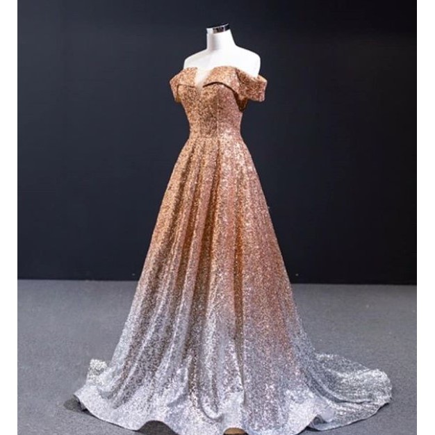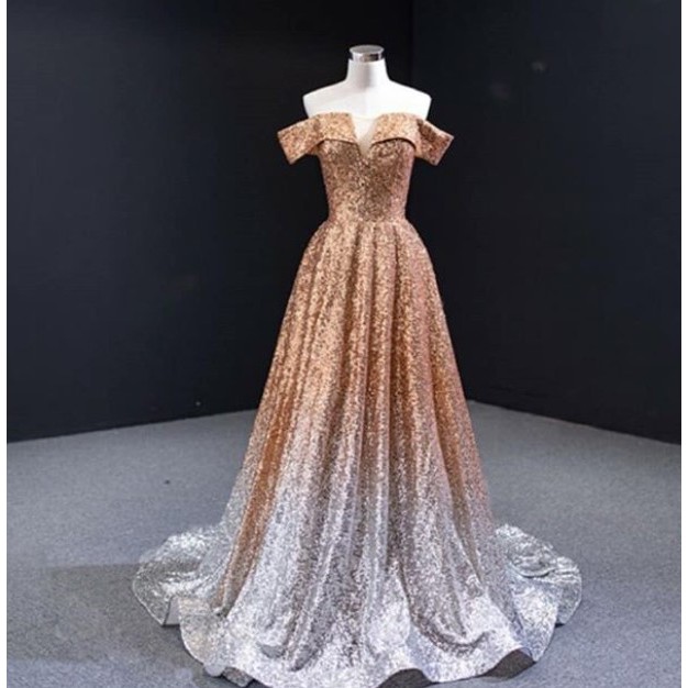 gaun pengantin gaun pesta pernikahan Elegan Mewah Emas Perak payet bling-bling BIg Ball Gown