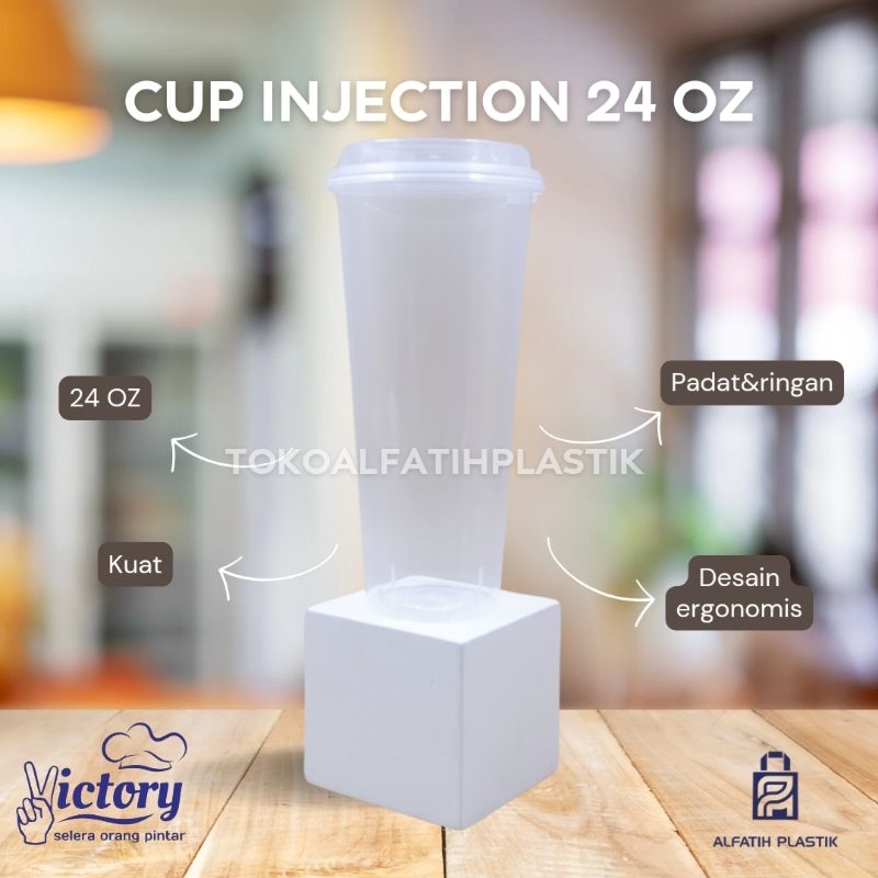 gelas cup injection / injeksi + tutup merk victory ukuran 360ml 380ml (12oz) 400ml (14oz) 500ml (16oz) 700ml (24oz) kuat tebal kokoh dan premium gelas kopi kafe warna bening transparan cup pp
