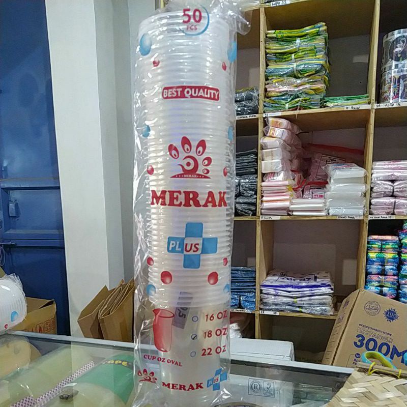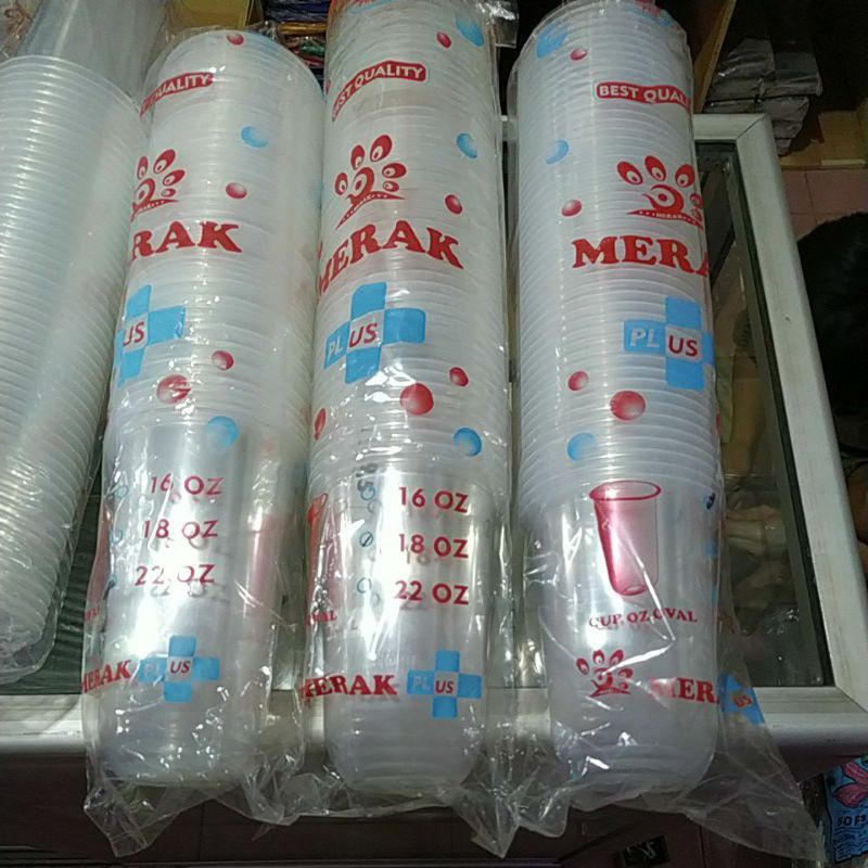 gelas plastik oval tebal merk merak 9gram 16,18,22oz gelas cup es jus