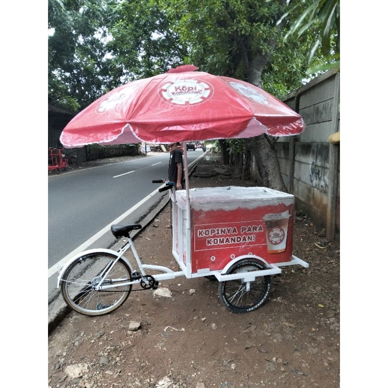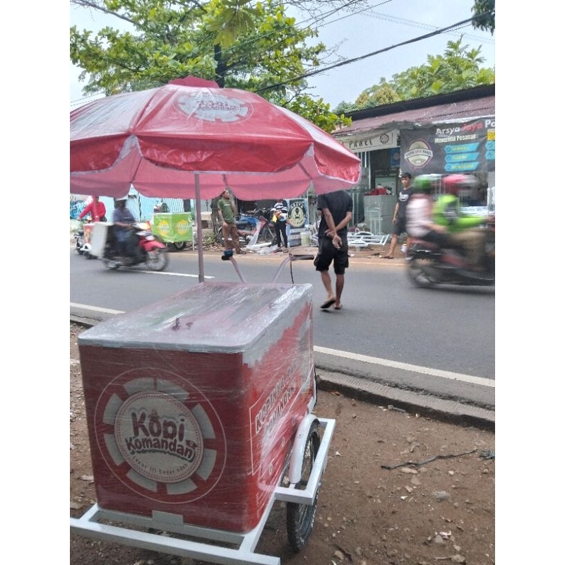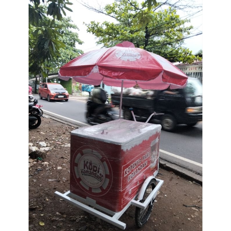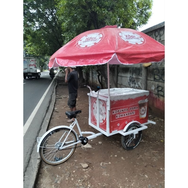 gerobak kopi keliling sepeda gowes. payung custom