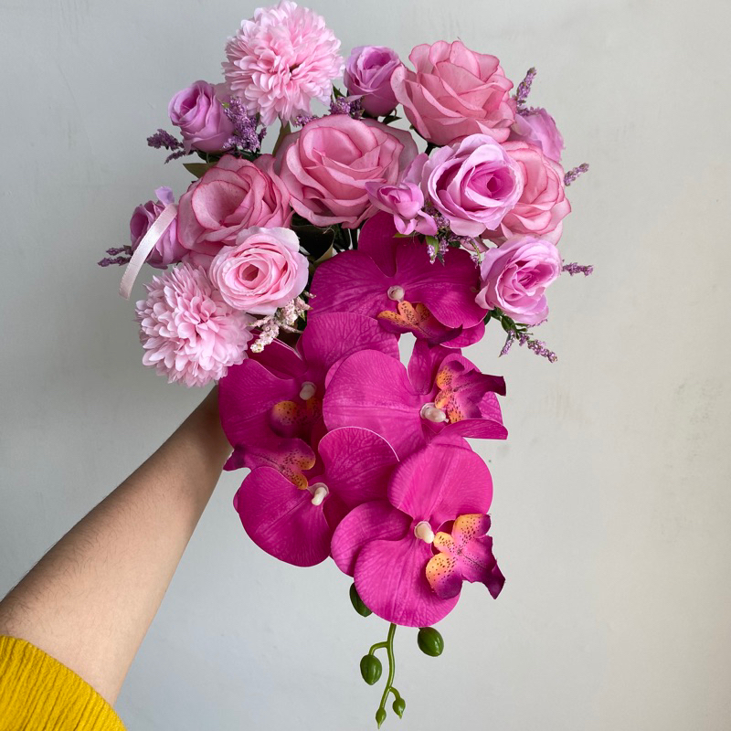 hand bouquet pernikahan kode YURI bunga artificial (palsu) tahan lama cocok untuk wedding atau prawedding bisa juga untuk hand bouquet brismeid
