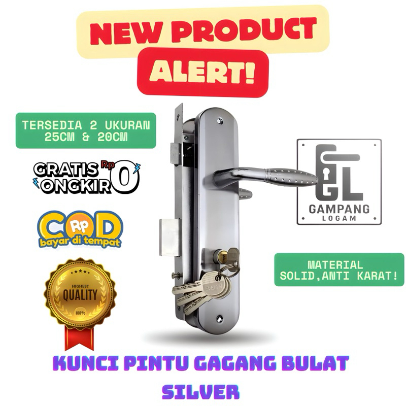 Kunci Pintu Gagang Bulat Silver 20cm 25cm | Kunci Pintu Rumah Anti Karat Handle Pintu Kuat Awet