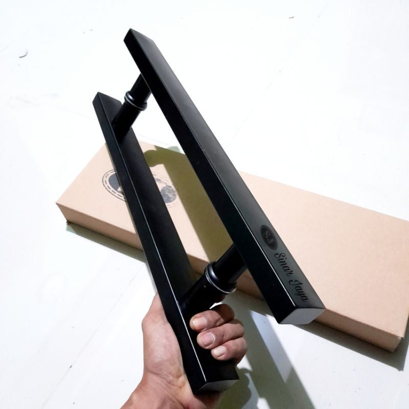 handle pintu rumah gagang pintu rumah tarikan pintu pegangan pintu rumah handle kaca baut tembus kotak stainlis minimalis 45cm 60cm warna hitam doff