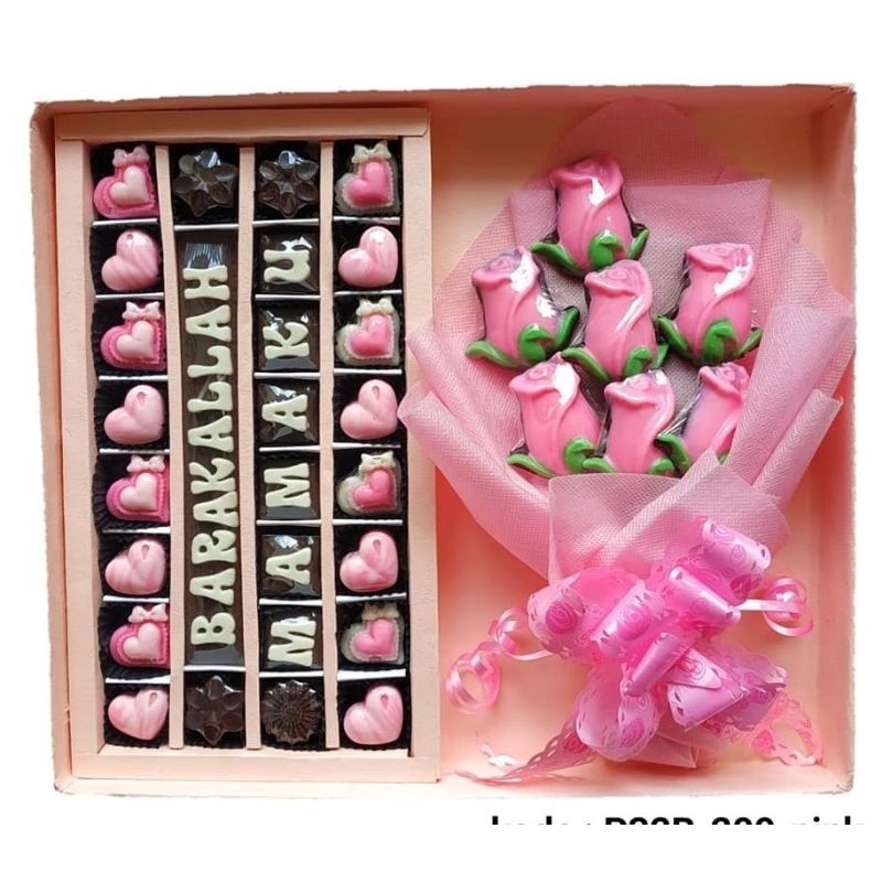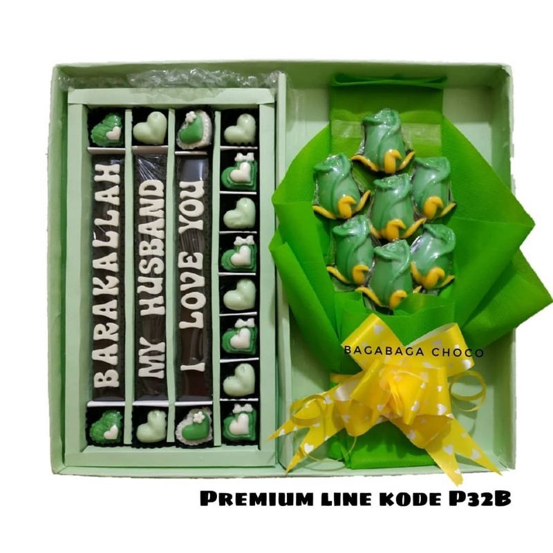 hard box premium line Bucket Bunga Coklat dan Coklat Huruf box sekat