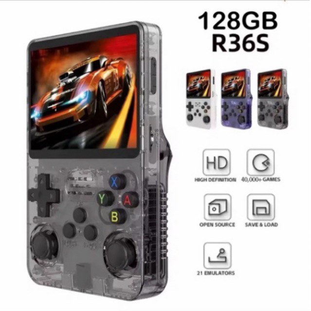 heiston - Retro handheld R36S 128GB 20000+ Classic Game multi console | Game Reto konsol genggam black only Gamepad