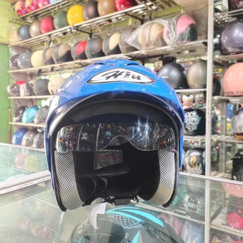 helm hiu arrow double visor polos blue mild / helm hiu arrow blue mild / helm hiu arrow original