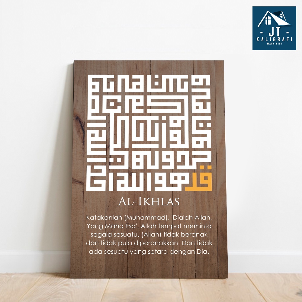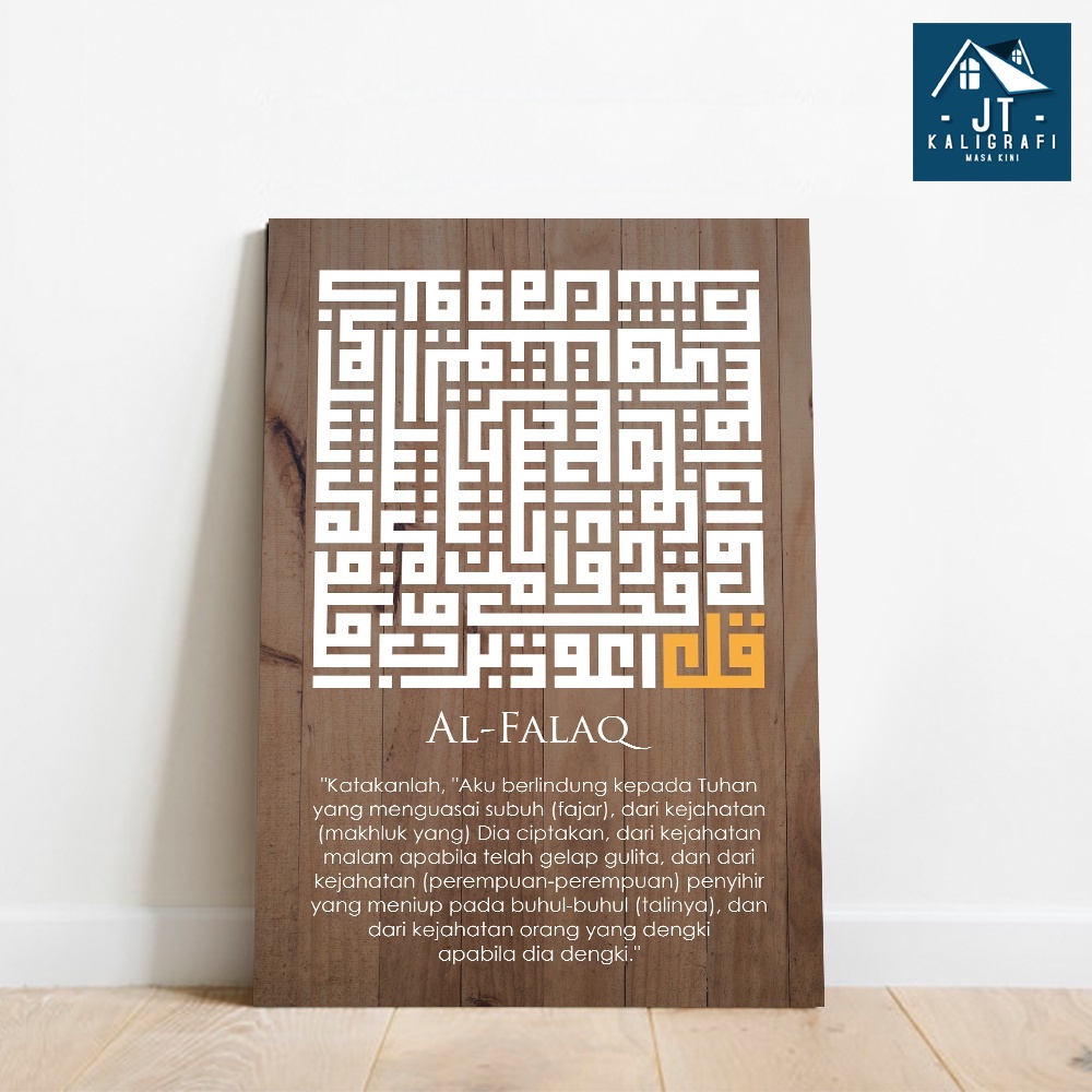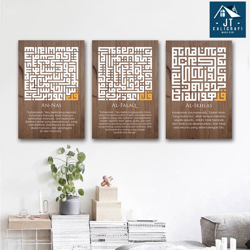 hiasan dinding dekorasi | Hiasan Dinding Wall Decor Kaligrafi Kufi Surat Pendek Surat An Nas Al Falaq Al Ikhlas Natural Cokelat Tua 20x30 -KS022