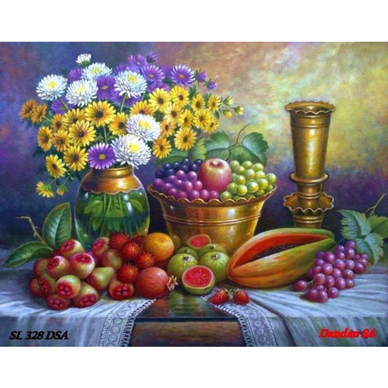 hiasan dinding gambar buah buahan diatas meja plus bingkai