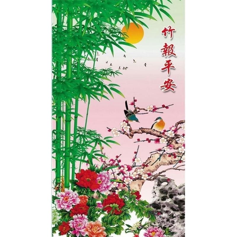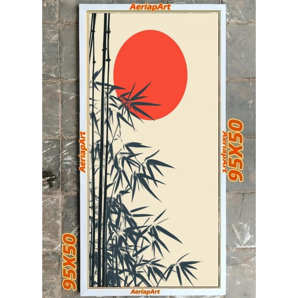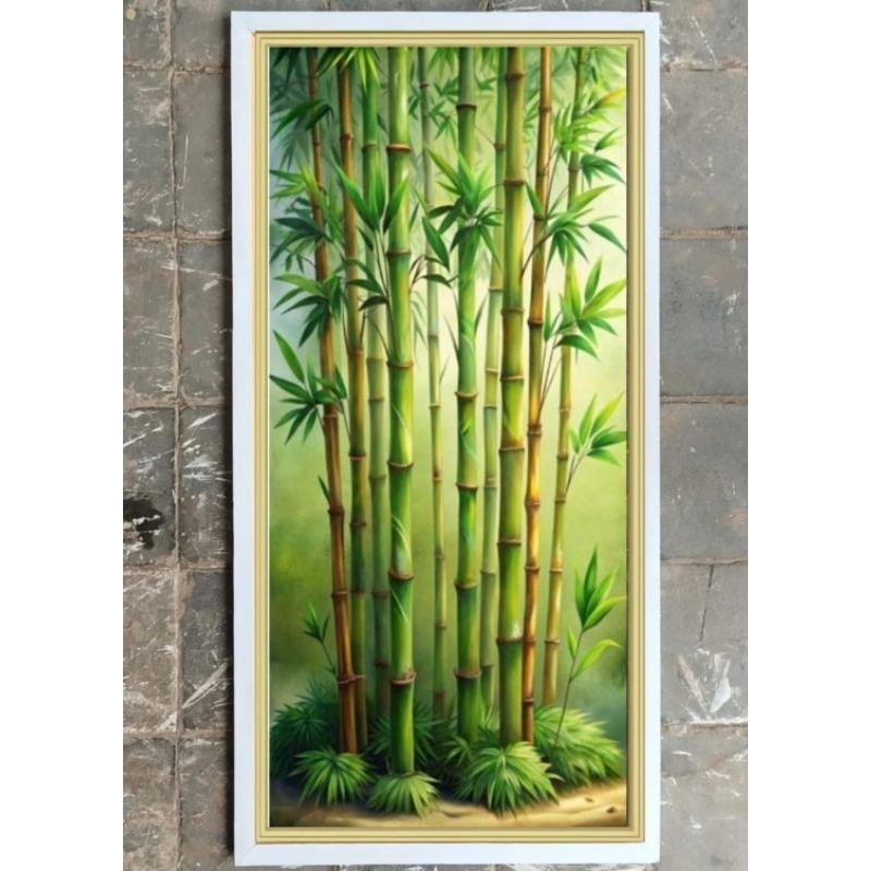 hiasan dinding lukisan cetak pohon bambu hijau potrait plus FIGURA ukuran 95*50