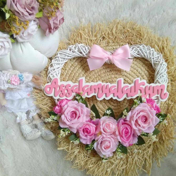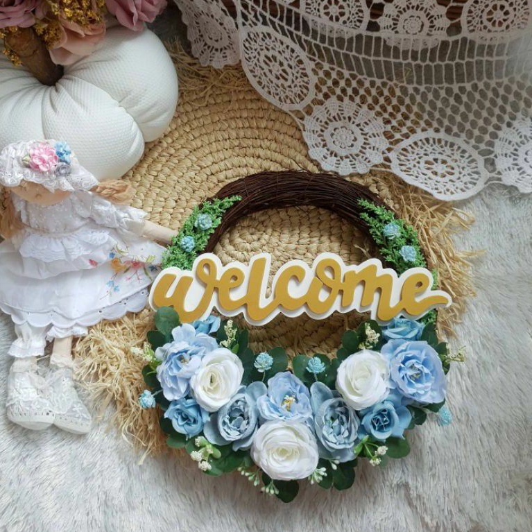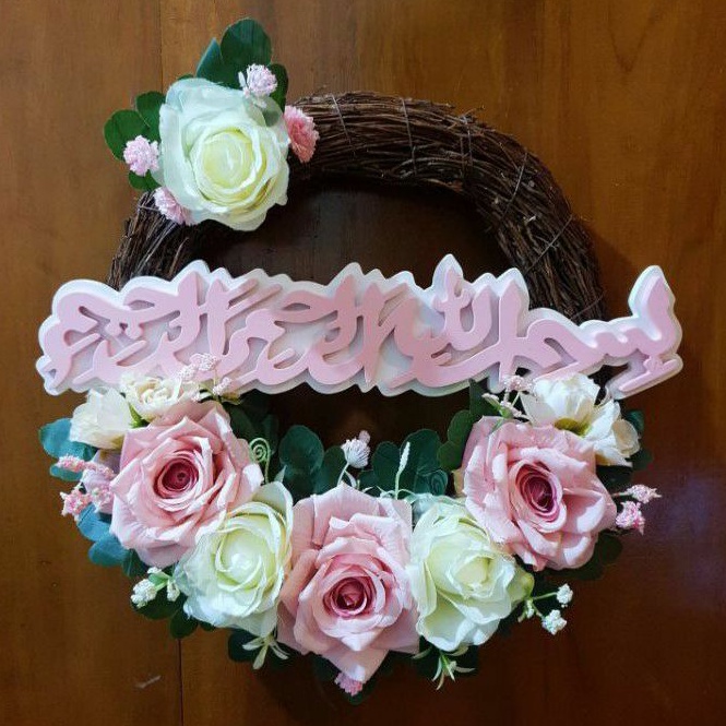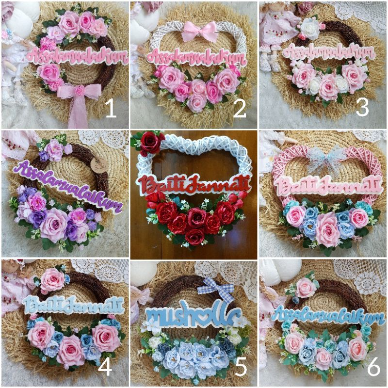 hiasan dinding pintu akar Wreath Flower Custom Tulisan Kayu Lapis Lettering home decor / bunga hias