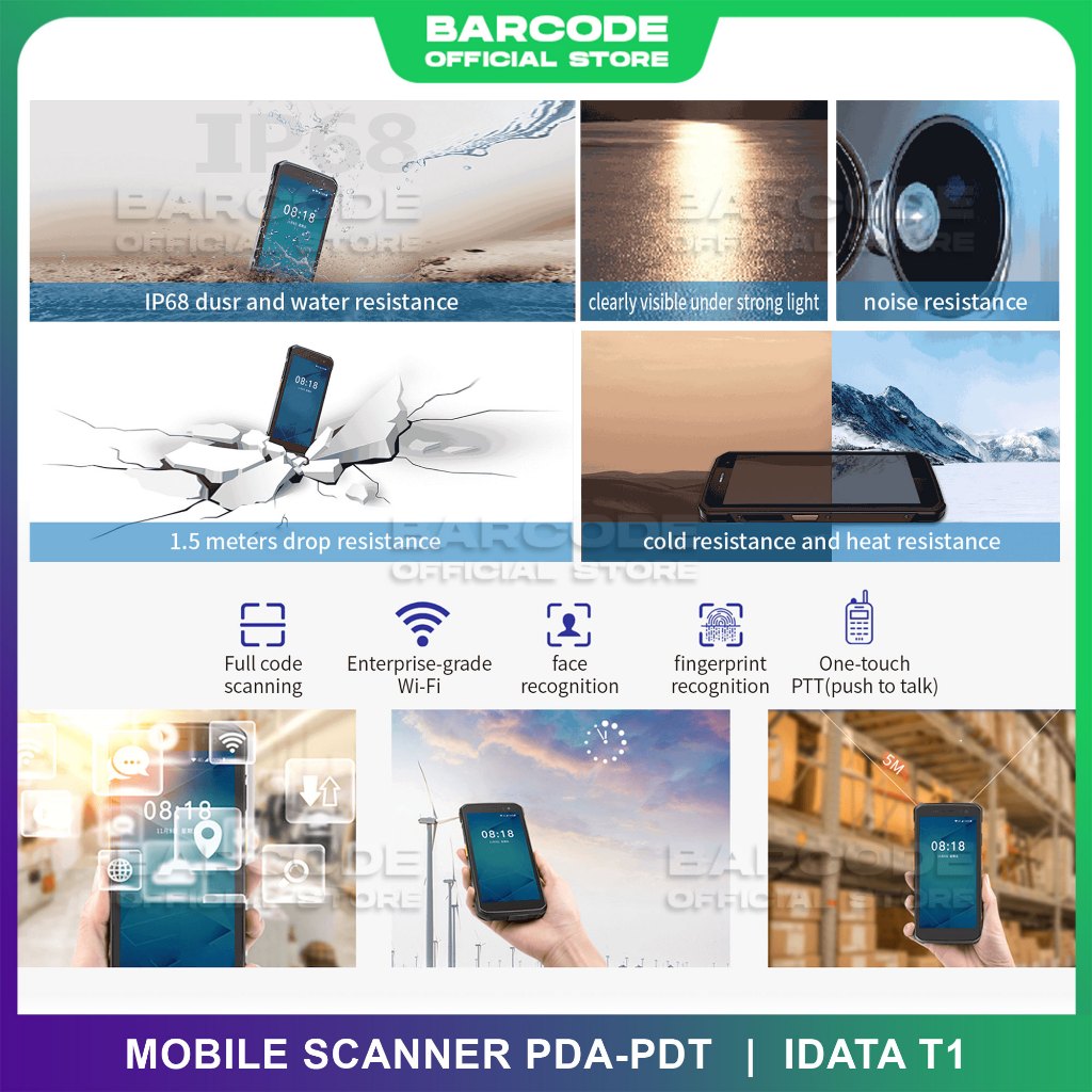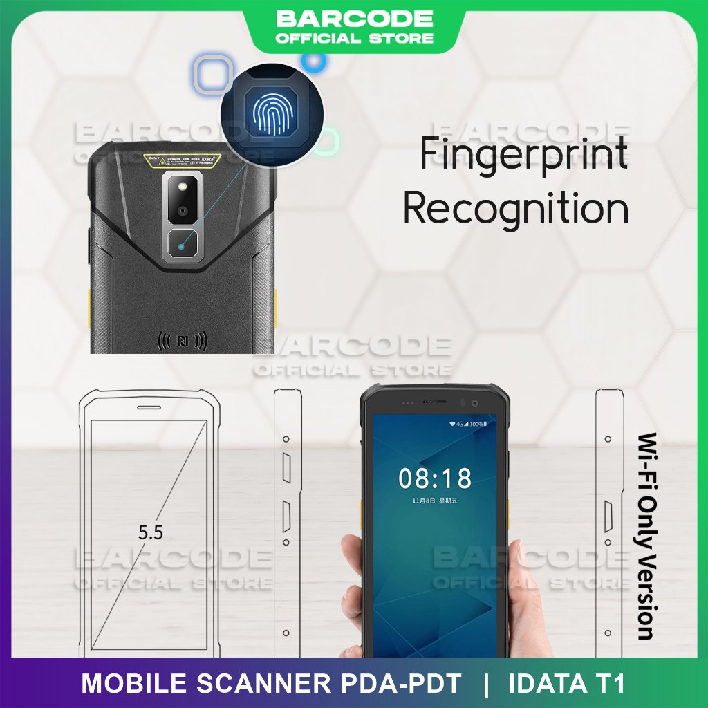 iData T1 Scanner Barcode Mobile Computer Android Scan Imager 2D 1D PDT Wifi 5G Fingerprint