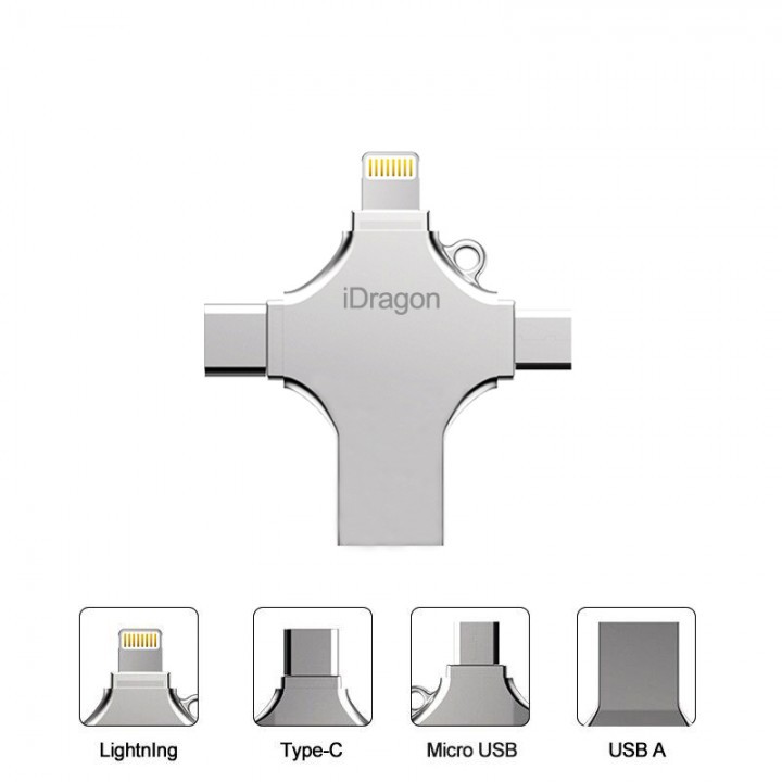iDragon U010 32GB - 4 in 1 Flash Drive Metal Lightning Micro USB Type-C Support FAT32 and exFAT