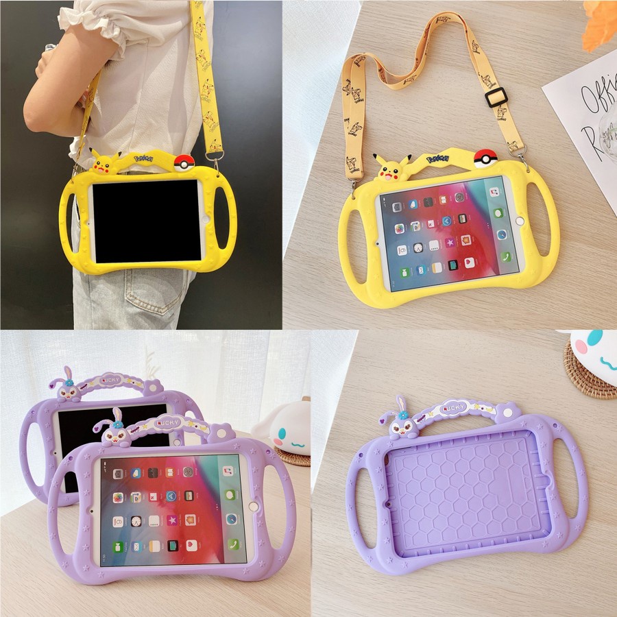 iPad 6 6th 9.7 inch 2018 A1893 A1954 Cute Cartoon Casing Cover Kartun Lucu Pelindung Tablet Anak Bentuk Cartoon Doraemon Hello Kitty Pokemon Pikachu Stella Lou