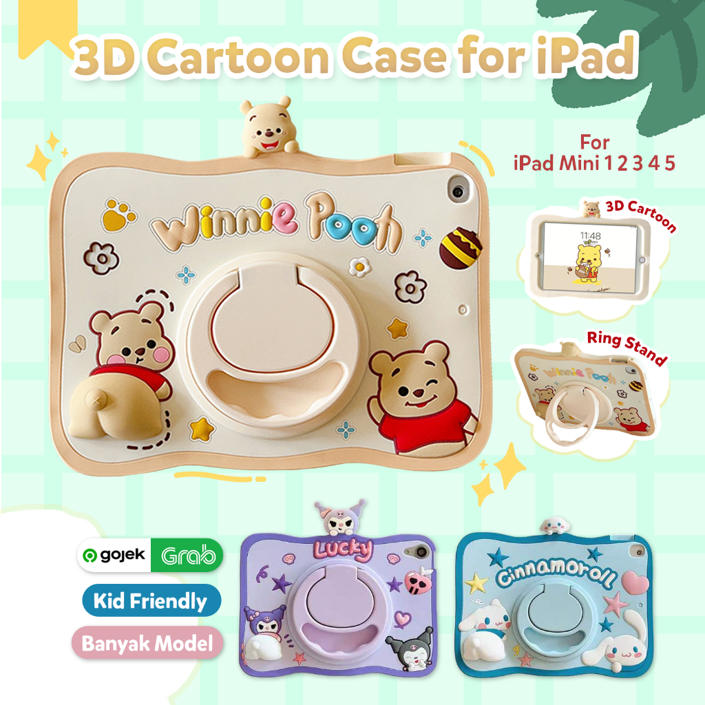 iPad Mini 1 2 3 4 5 7.9 inch Kid Case 3D Cartoon Casing Anak Stand Ring Rotate Softcase Cute Pooh Sanrio Kuromi Cinnamorol Pocha Kesing Children Pelindung Tablet