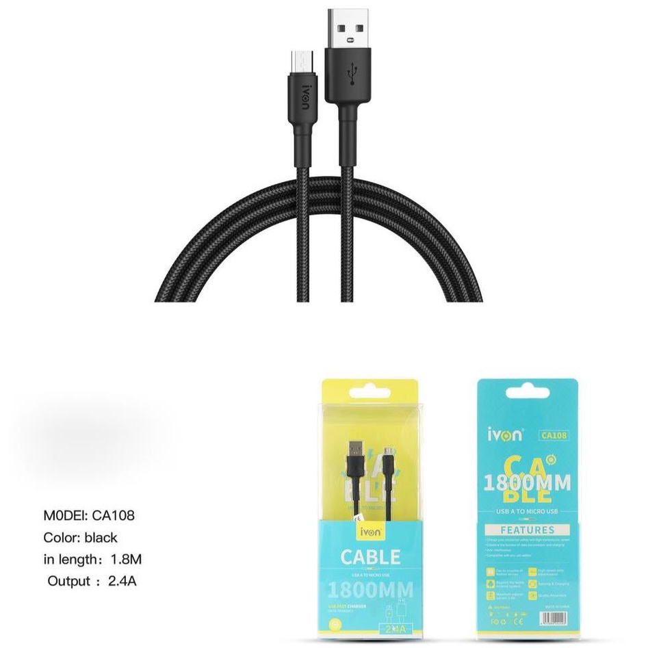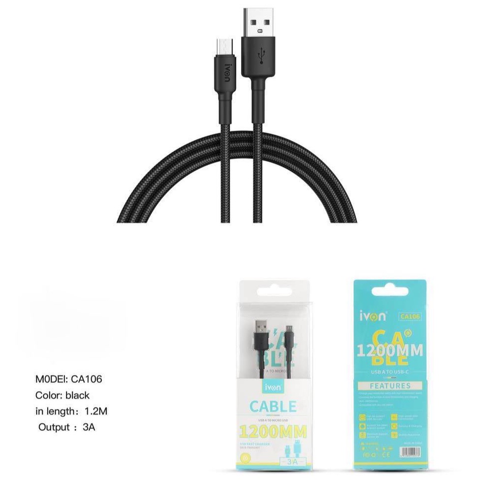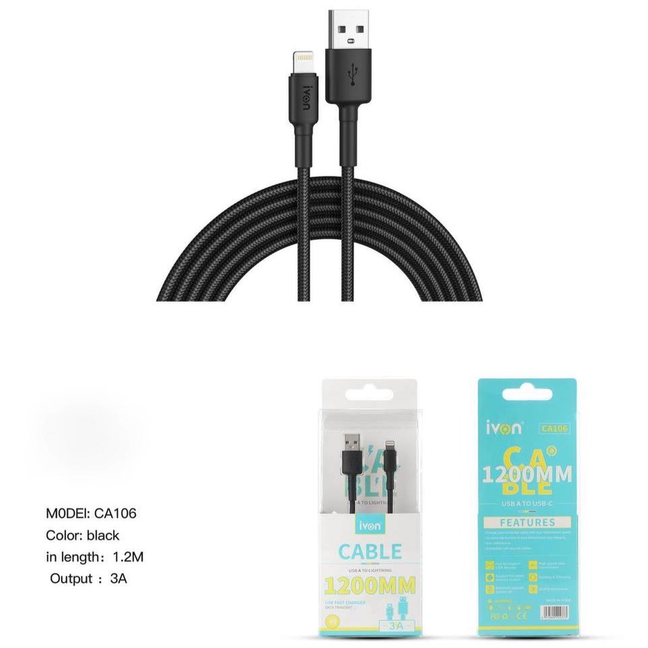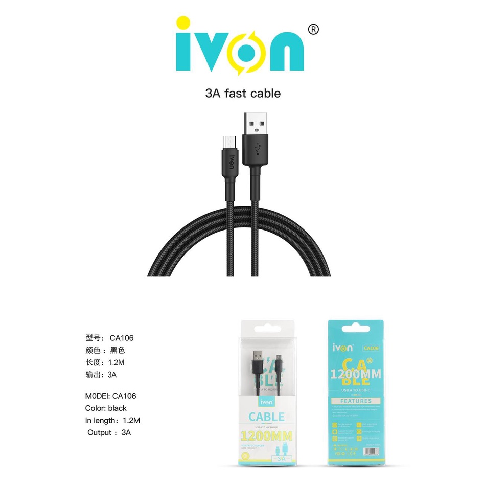iVON Kabel Data Usb 3A Quick Charge Fast Charging Cable Android IOS iPhone Type-C Micro 1,2M dan 1,8M