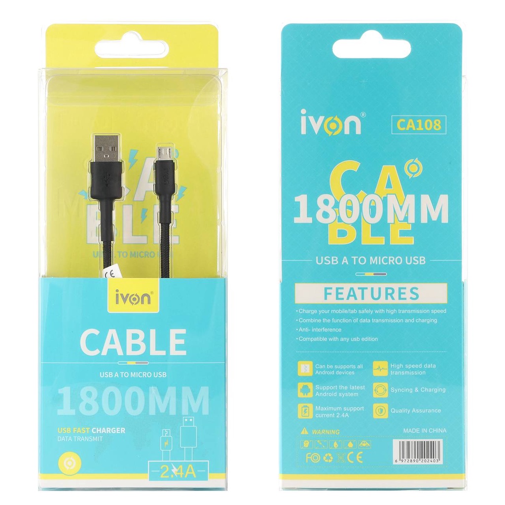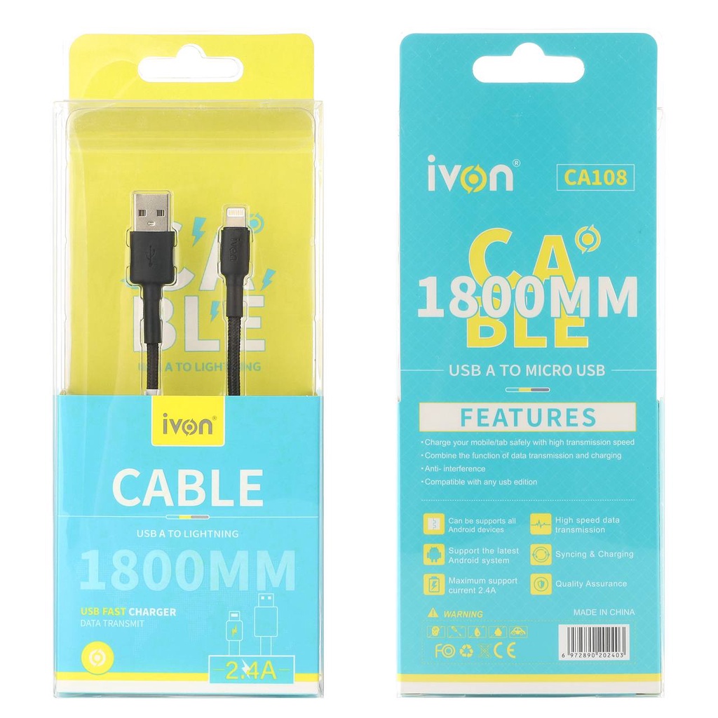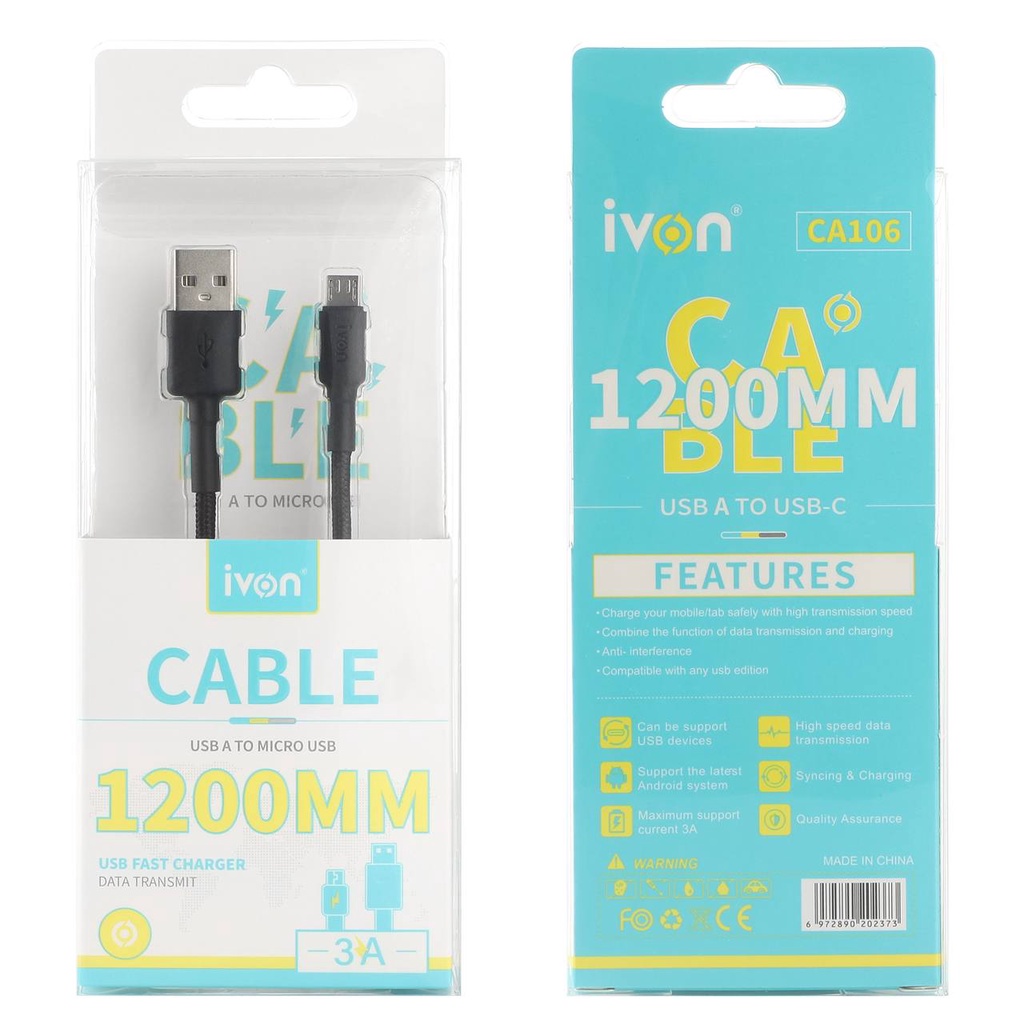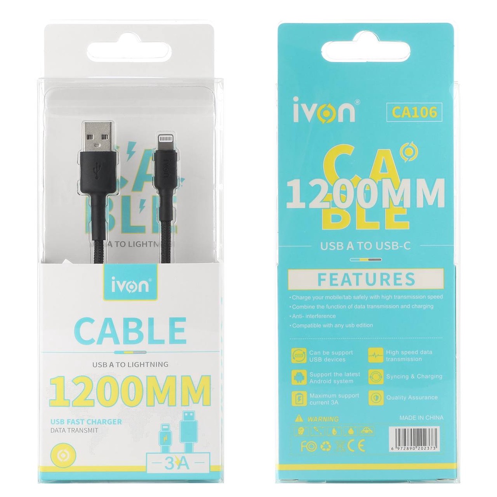 iVON Kabel Data Usb 3A Quick Charge Fast Charging Cable Android IOS iPhone Type-C Micro 1,2M dan 1,8M