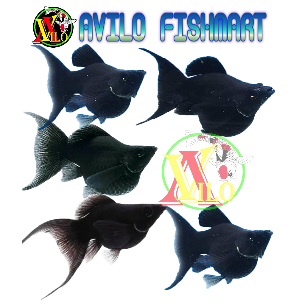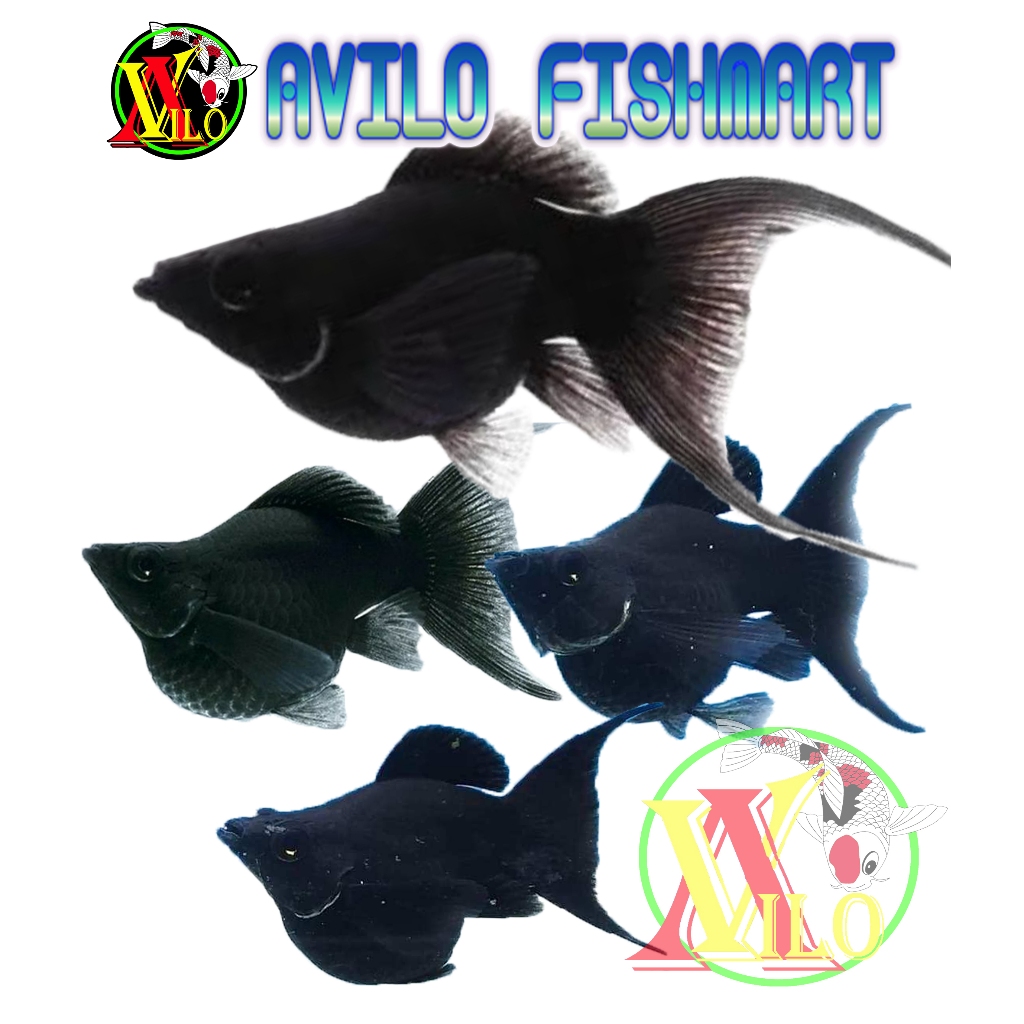 ikan hias aquascape black moli balon molly cagak ekor cawang ukuran kecil