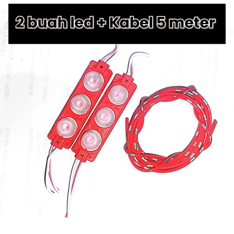 isi 2 buah lampu LED 3 mata dan kabel bintik 5 meter paket lampu kolong 12 volt 24 volt
