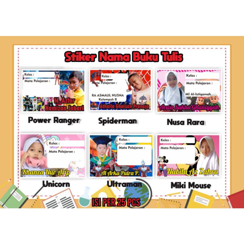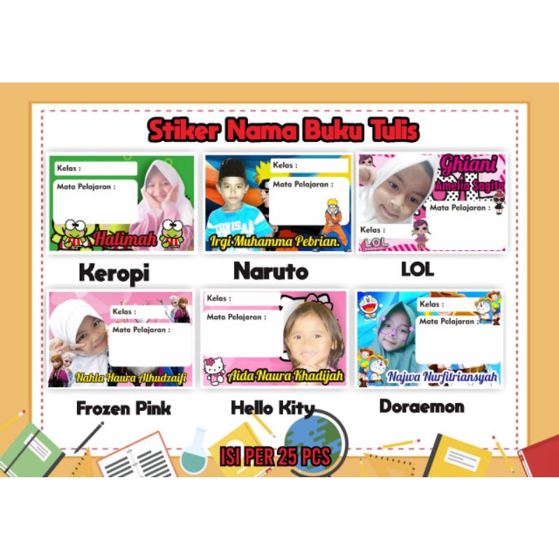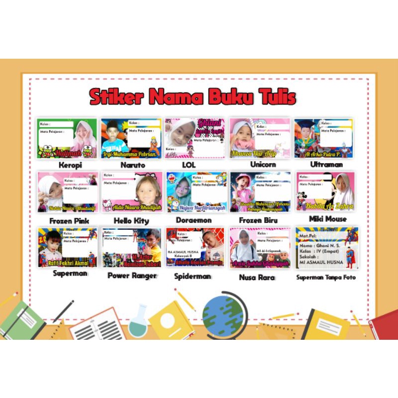 isi 20 pcs stiker buku tulis custom foto/stiker label mata pelajaran/stiker label buku pelajaran