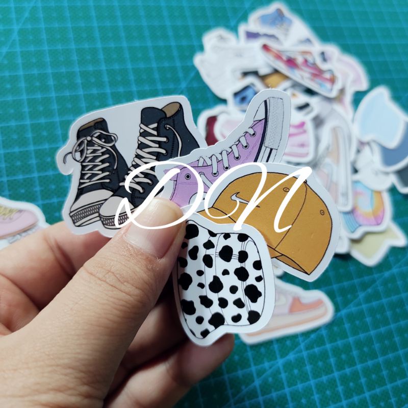 isi 32 pcs stiker sepatu topi minimalis sticker kertas gambar sepatu topi minimalis stiker aesthetic