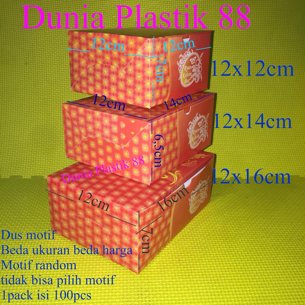 isi100pcs DUS KUE MOTIF 12x12CM 12x14CM 12x16CM box kotak kertas tempat snack hajatan kue aqua buah
