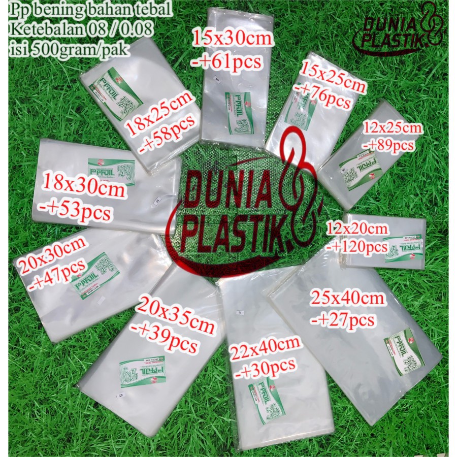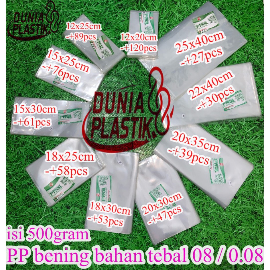isi500gr kantong plastik PP BENING bahan TEBAL 08 Micron ketebalan kuat transparan kaku snack kerupuk ciki