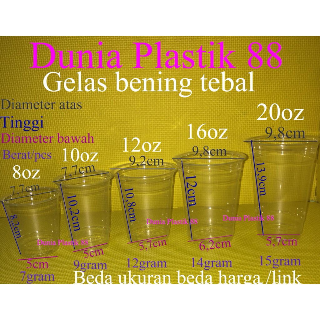 isi50pcs GELAS cup BENING plastik TEBAL PET 8oz 10oz 12oz 16oz 20oz (BELUM TERMASUK TUTUP)