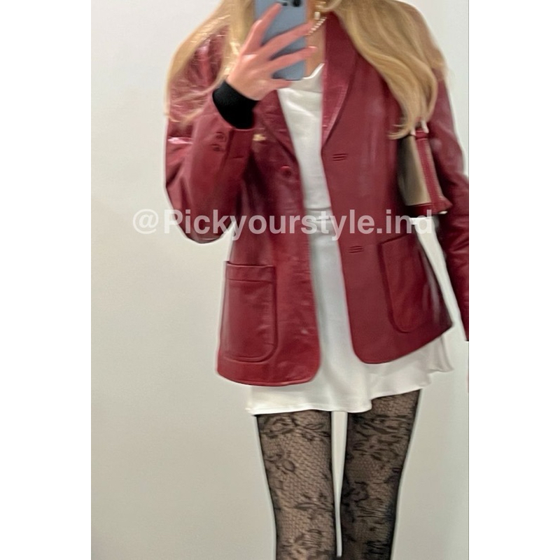 jaket kulit jas merah Maroon jaket kulit maroon Red Leather Jacket Maroon Red Leather Blazer merah jaket kulit jas kulit