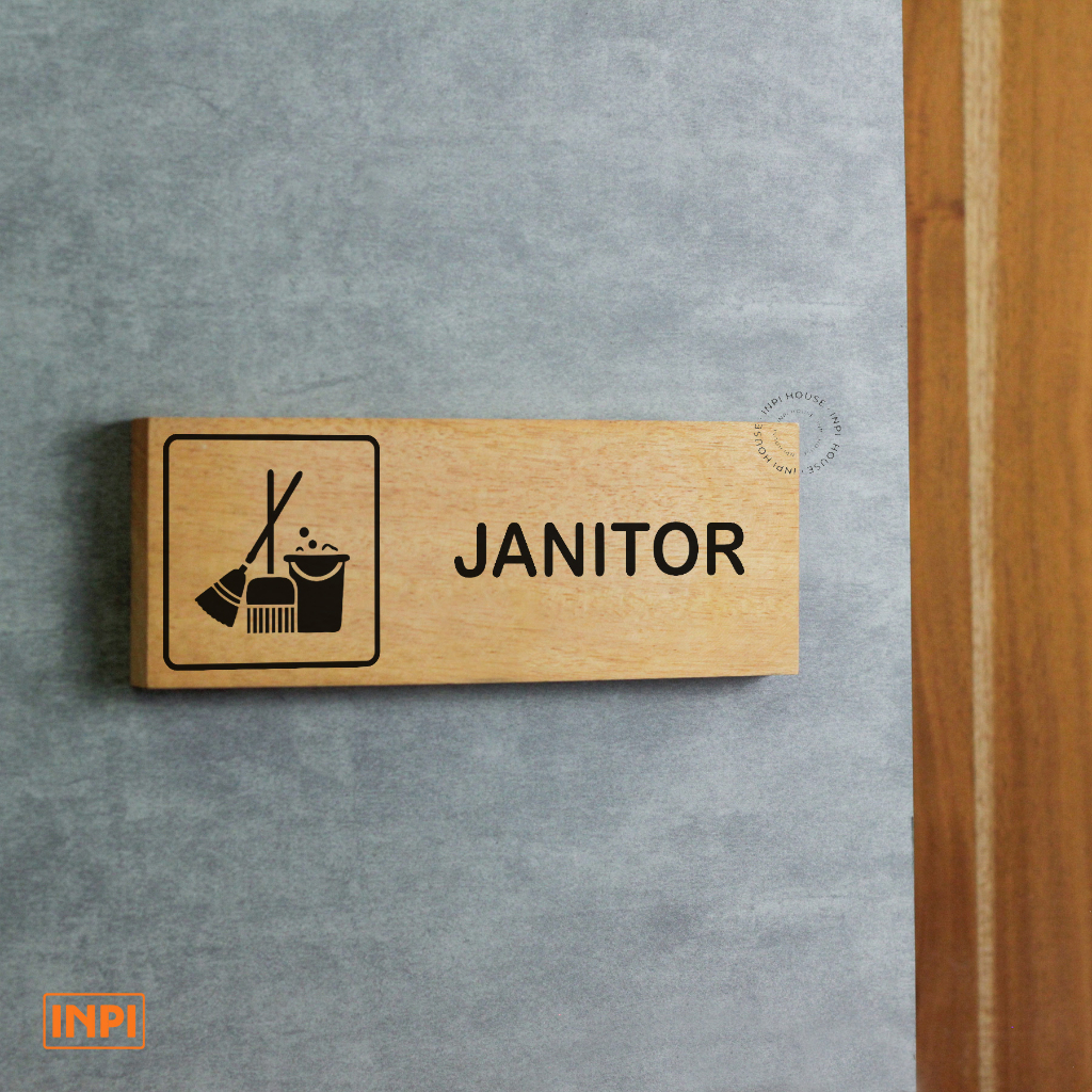 INPI HOUSE Signage Janitor Room - Papan Tanda Ruangan Petugas Kebersihan - Kayu