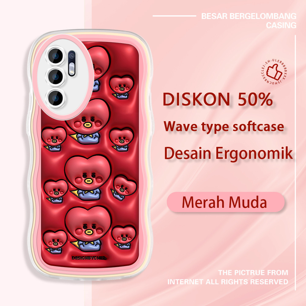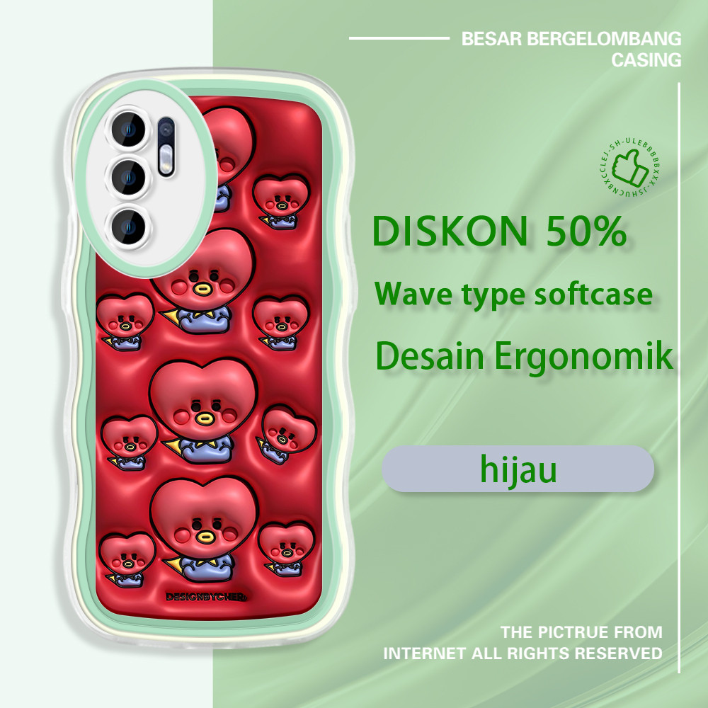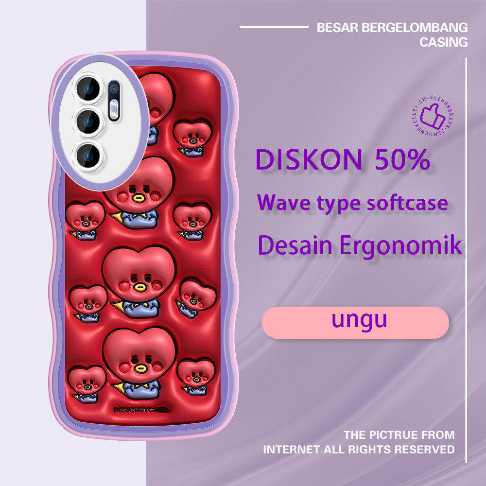 jinsouwe OPPO A74 A57 A77 a94 a98 A79 5G F19Pro Reno 2 5F 5LITE 6 7 10 10Pro Narzo 50 5G Casing Handphone BTS Kim TaeHyung BT21 TATA 3D warna-warni gelombang batas sofe case cassing kesing cover oftcase