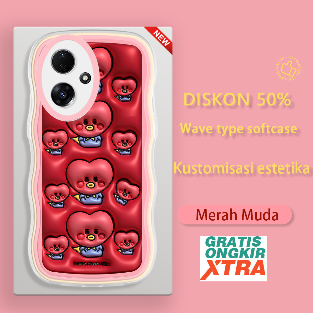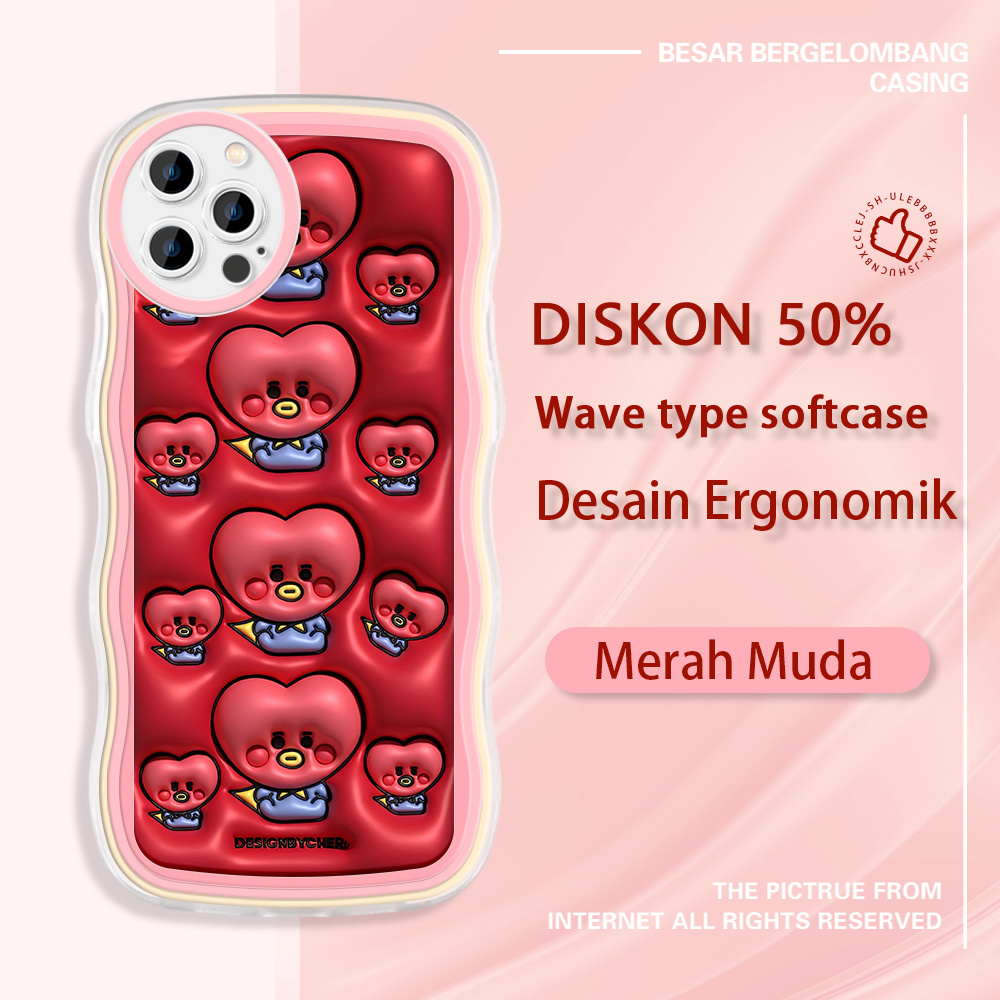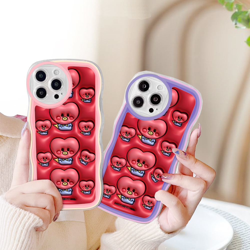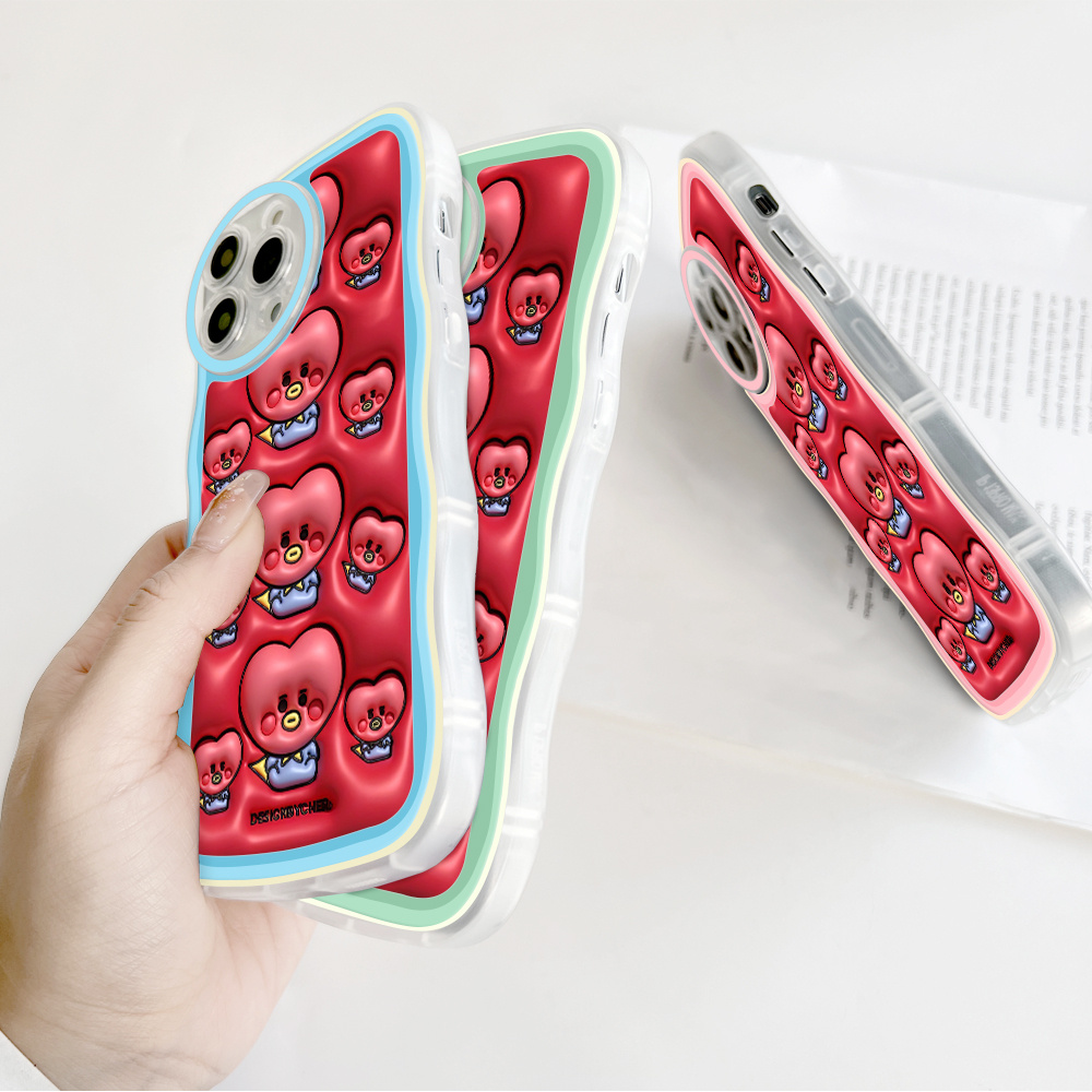 jinsouwe OPPO A74 A57 A77 a94 a98 A79 5G F19Pro Reno 2 5F 5LITE 6 7 10 10Pro Narzo 50 5G Casing Handphone BTS Kim TaeHyung BT21 TATA 3D warna-warni gelombang batas sofe case cassing kesing cover oftcase