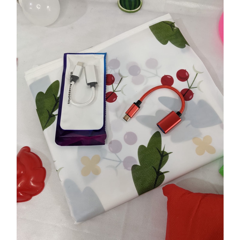 kabel OTG konektor data transfer converter Type C Micro USB bahan lapis kain
